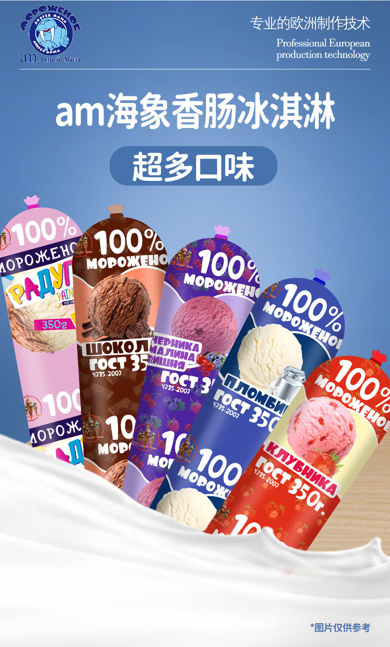 am海象皇宫俄冰淇淋香肠奶油味350g罗斯风味冰激凌雪糕冰棍生鲜冷饮