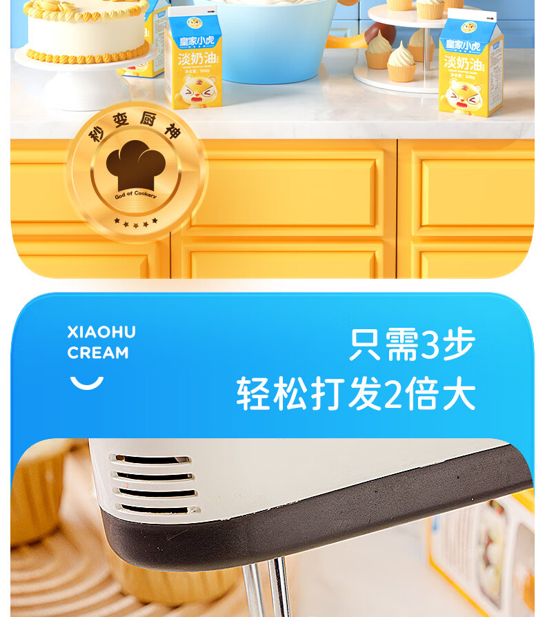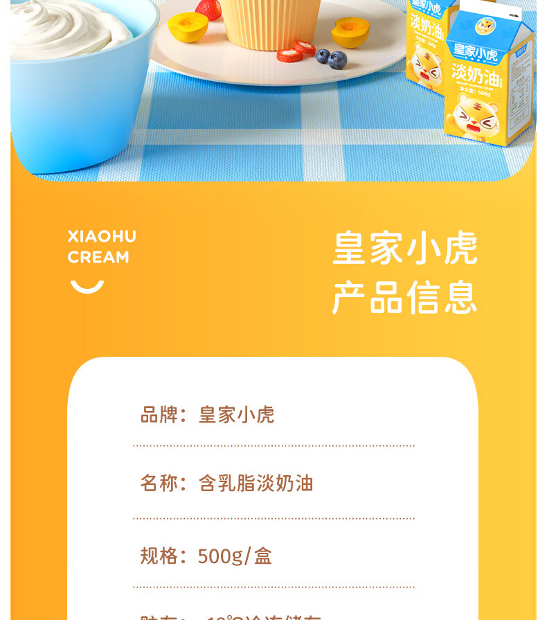 皇家小虎淡奶油(含乳脂)小包装500g稀奶油烘焙原料半成品新手练手