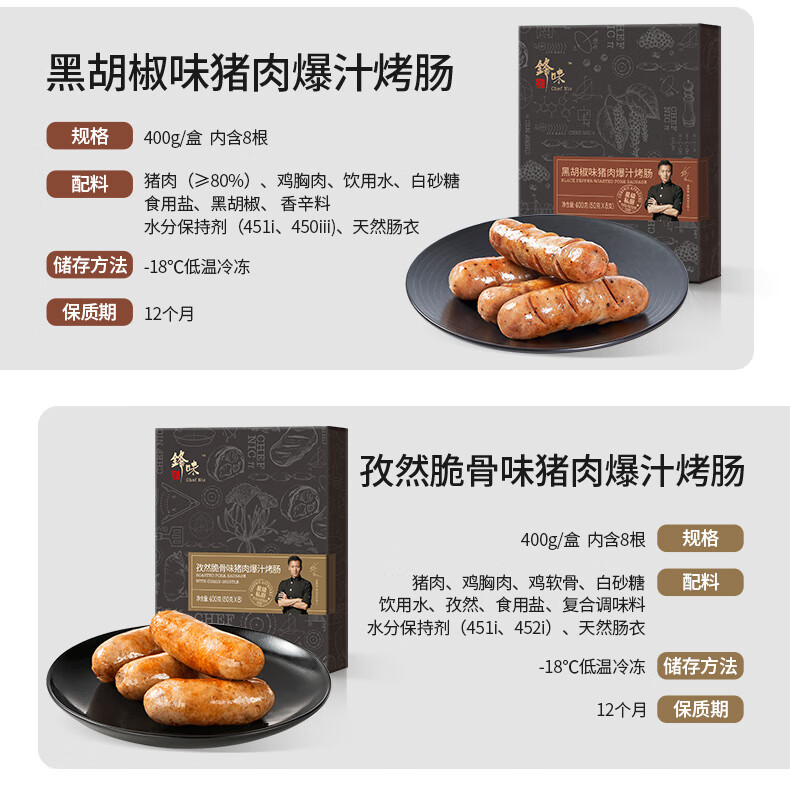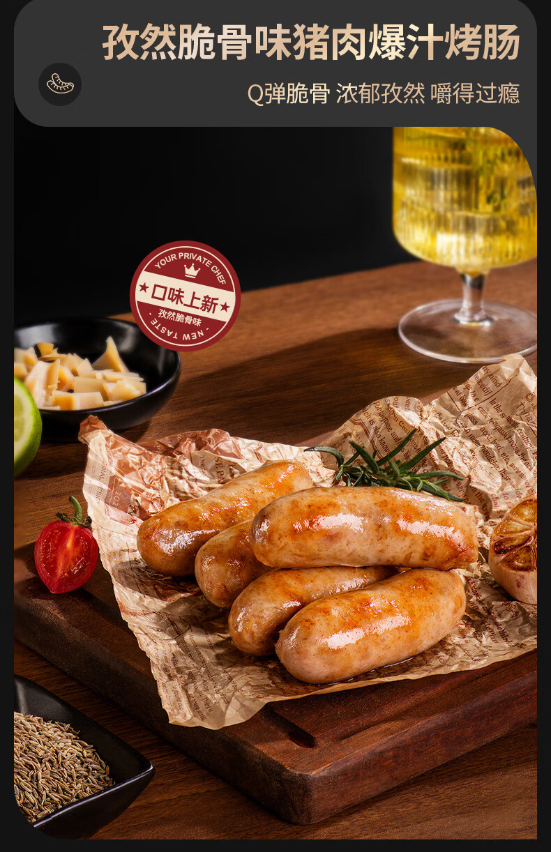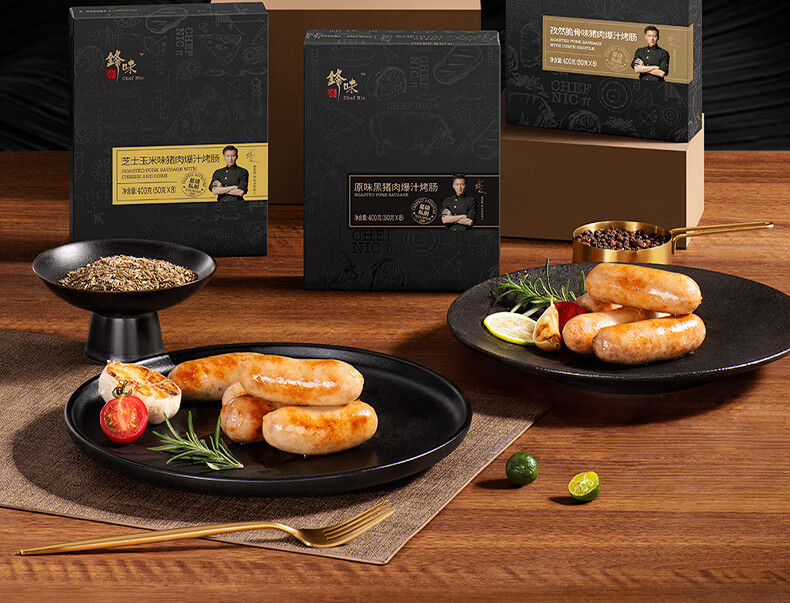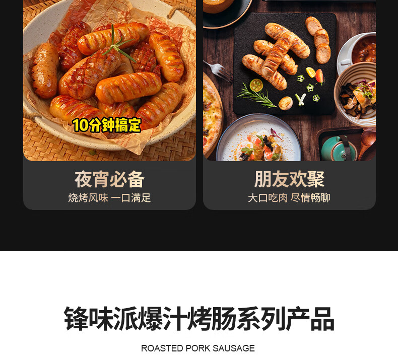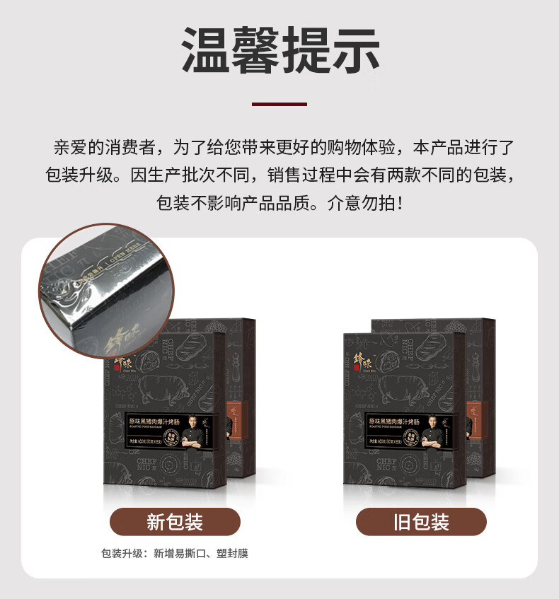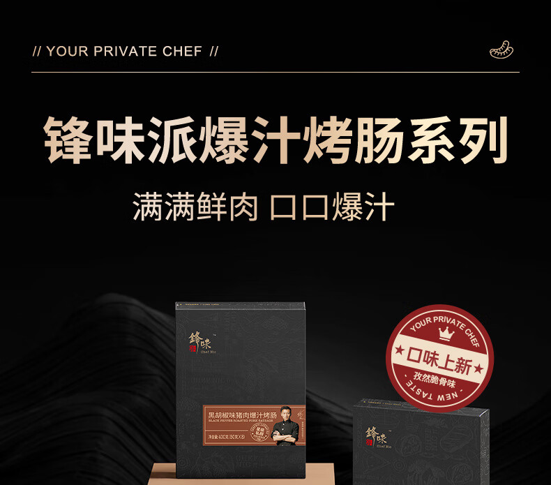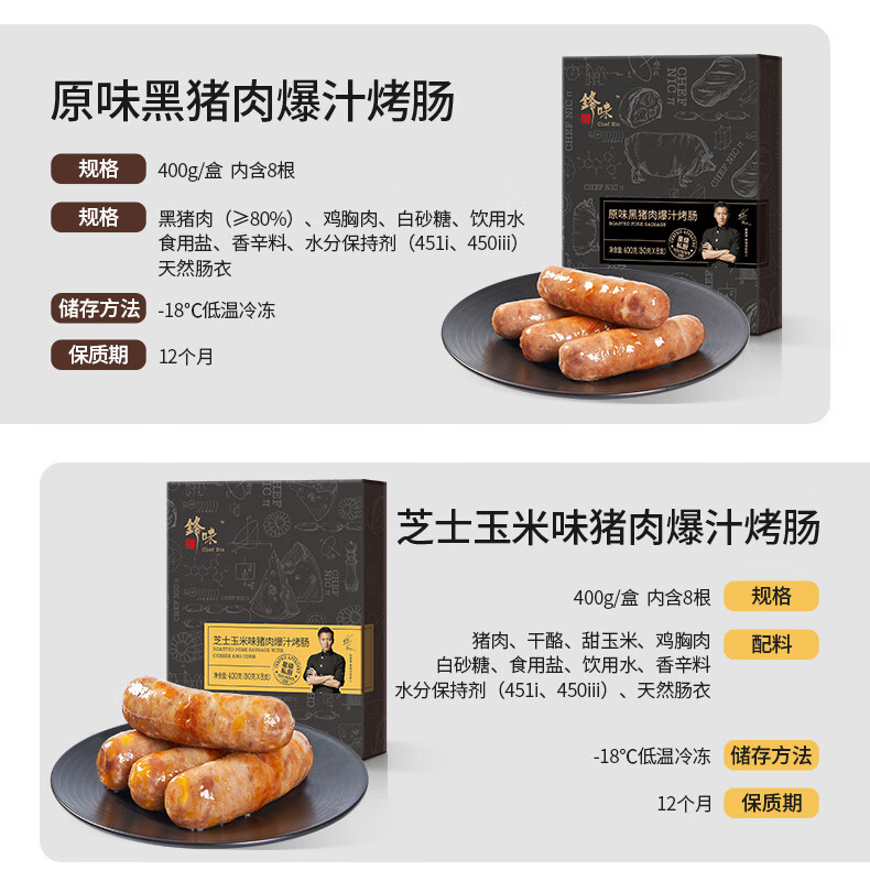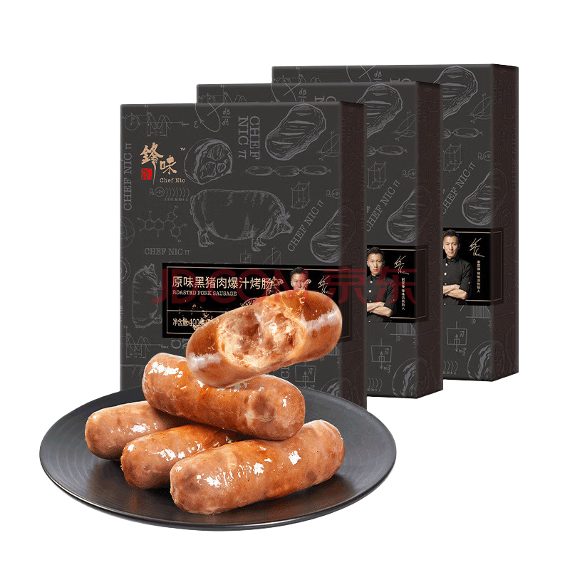 锋味派火山石烤肠纯肉肠早餐火腿肠台式肉肠家庭装爆汁脆皮肠香肠3盒装 原味黑猪肉*3 通用