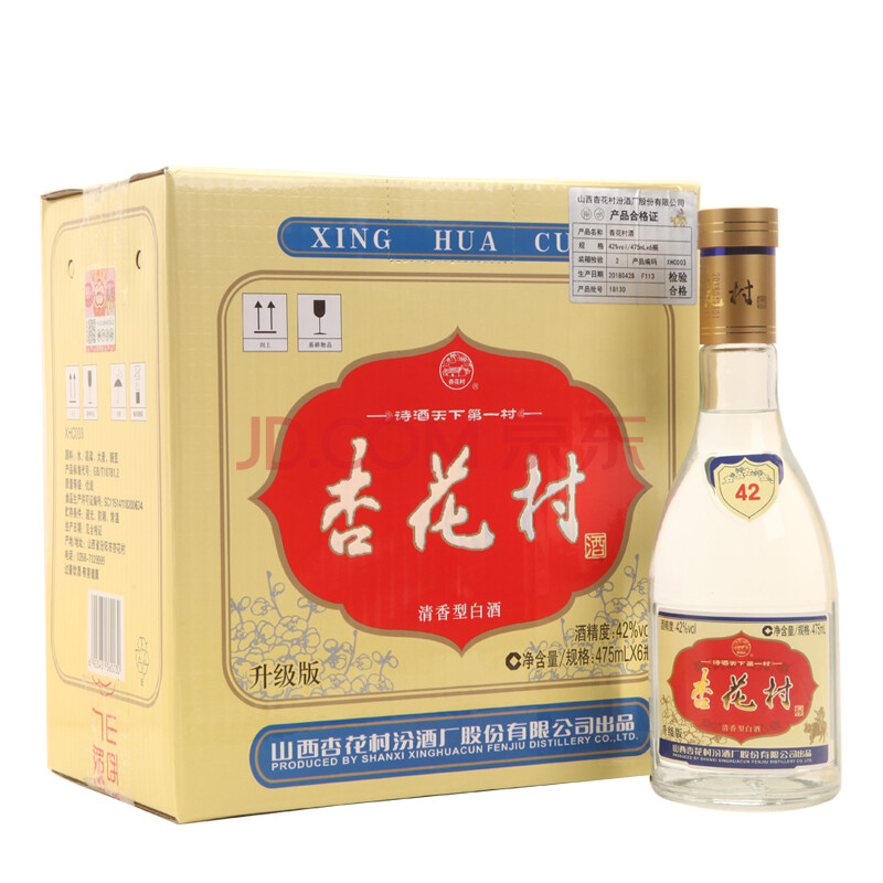 汾酒 杏花村光瓶 清香型 白酒 42度 475ml*6瓶 整箱装