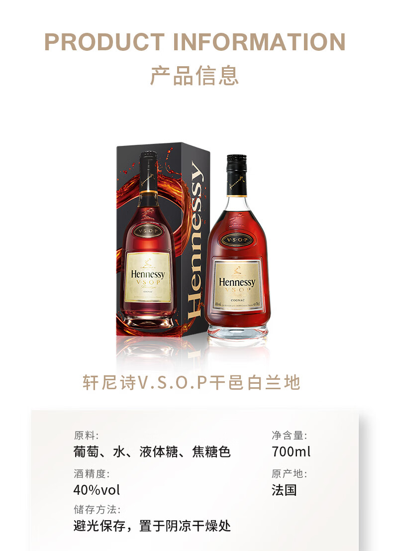 轩尼诗(Hennessy) VSOP 干邑白兰地 法国进口洋酒 700ml(多款包装交替发货)