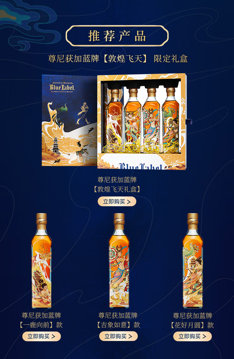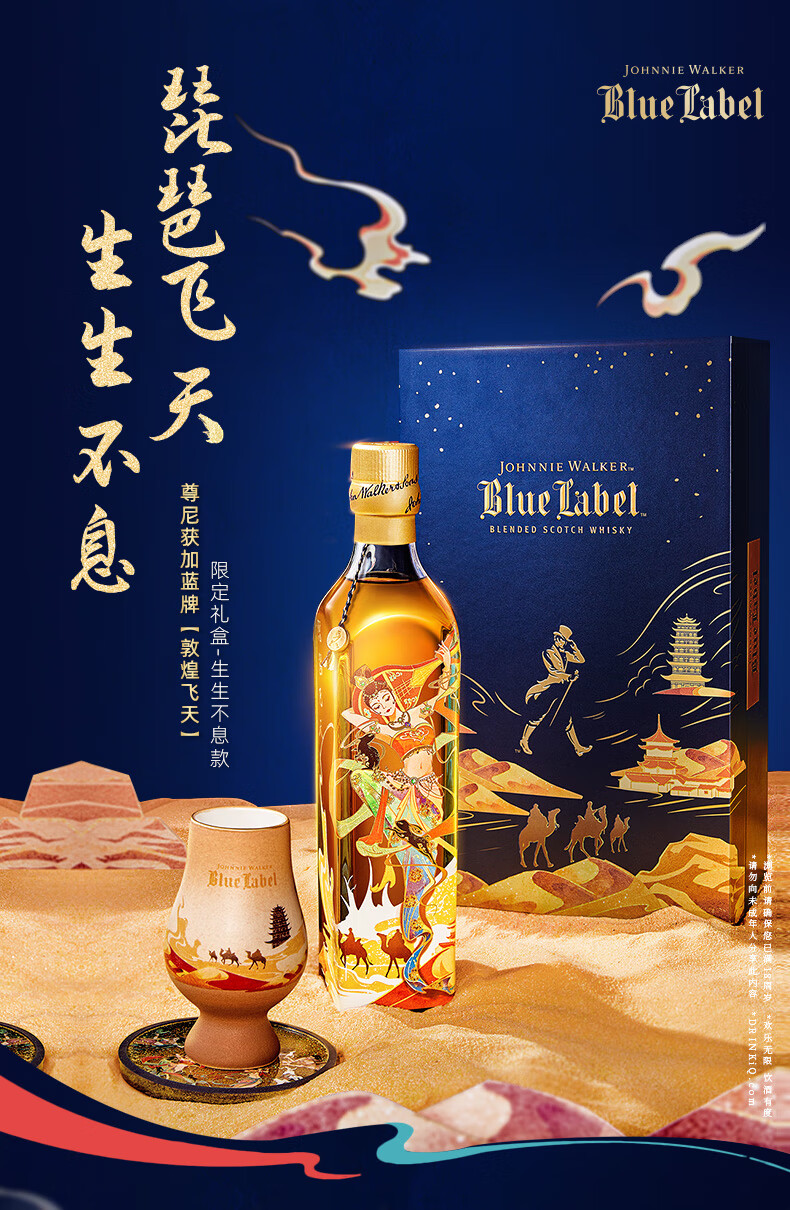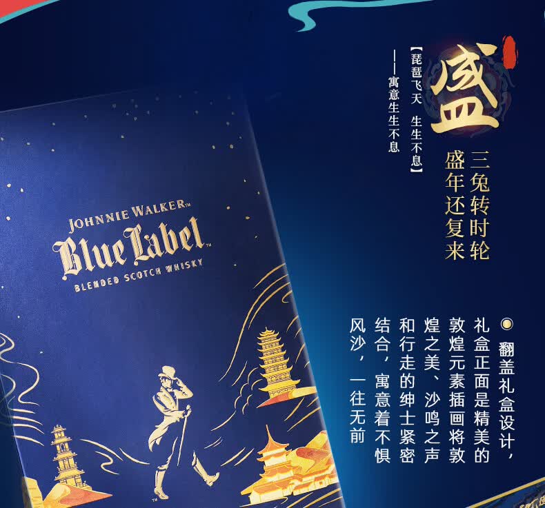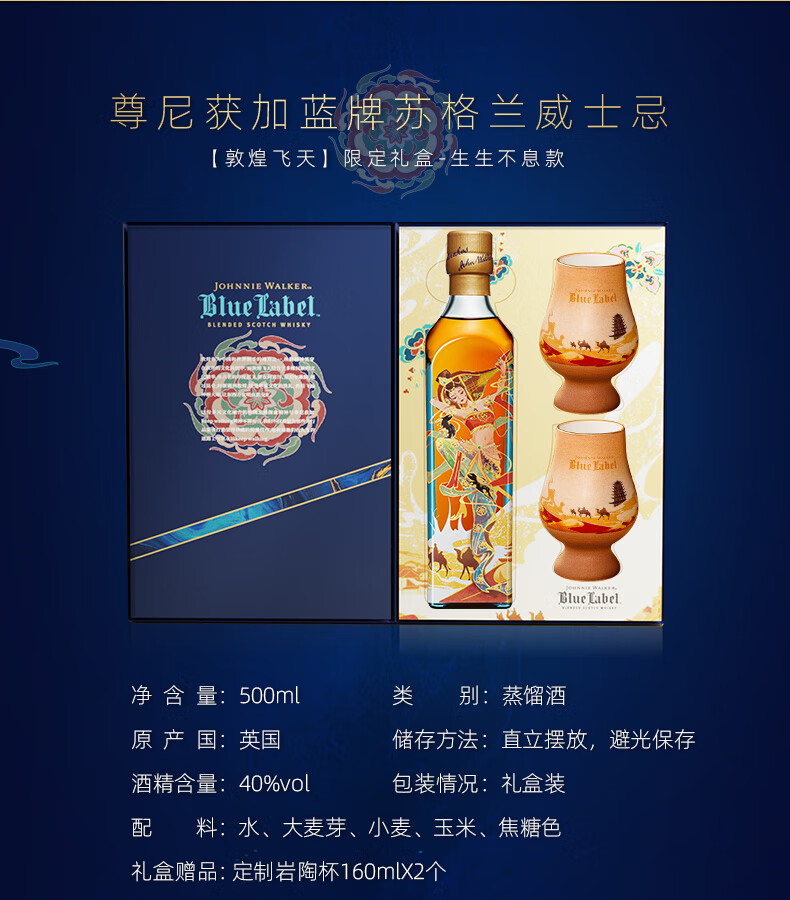 尊尼获加(JOHNNIE WALKER)蓝牌 独家定制礼盒 敦煌飞天系列 生生不息礼盒威士忌500ml