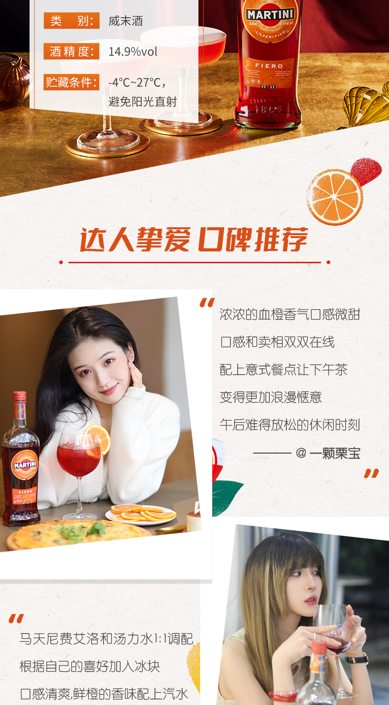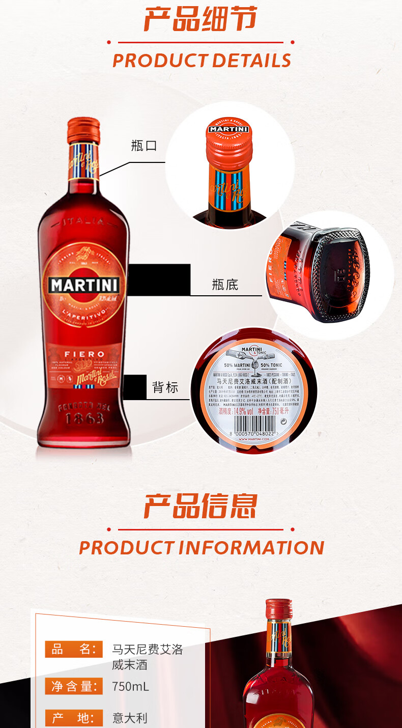 马天尼(Martini)洋酒 意大利进口 费艾洛威末酒 750ml