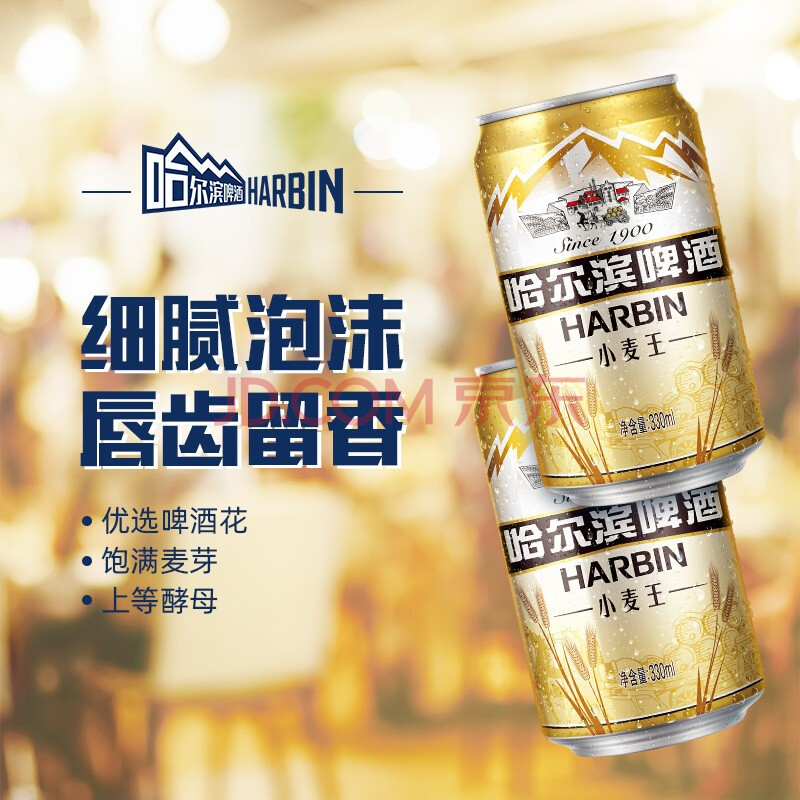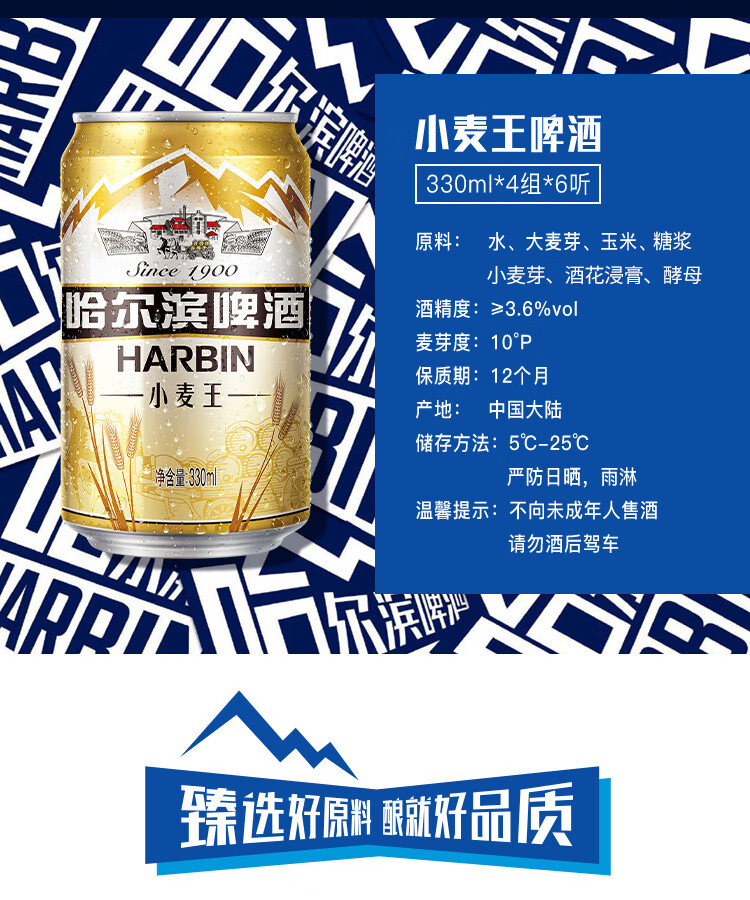 哈尔滨牌小麦王啤酒整箱 馥郁麦香 口感劲爽 330ml*4组*6听 卡包版 10°P