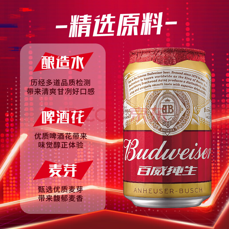 百威啤酒整箱经典纯生啤酒清爽型 8°P 330ml*24听 高端啤酒