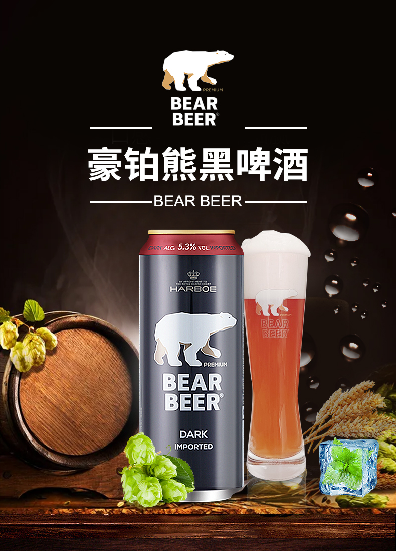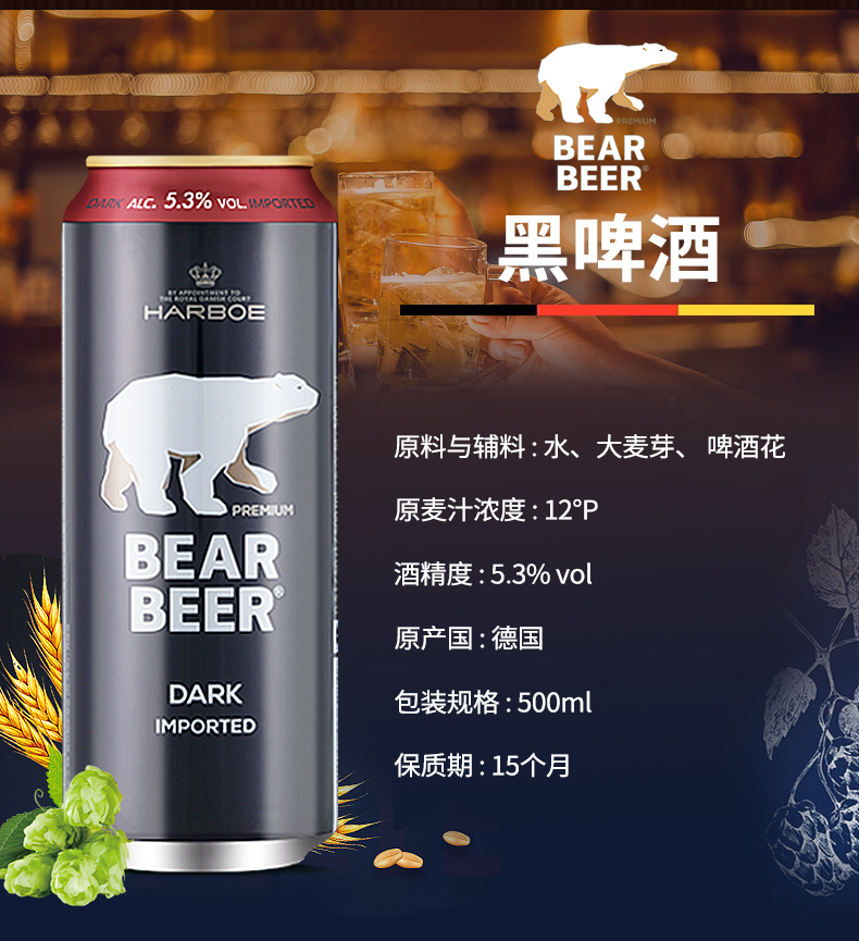 豪铂熊(BearBeer)黑啤酒500ml*24听 整箱装 德国原装进口