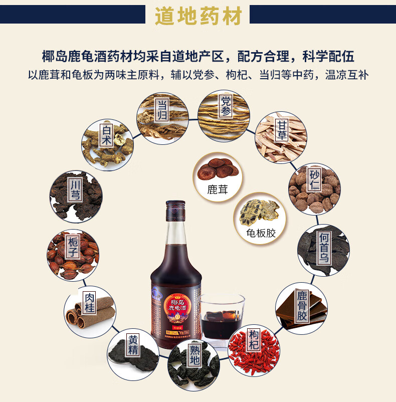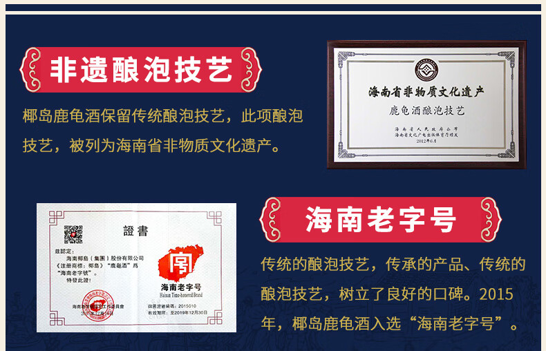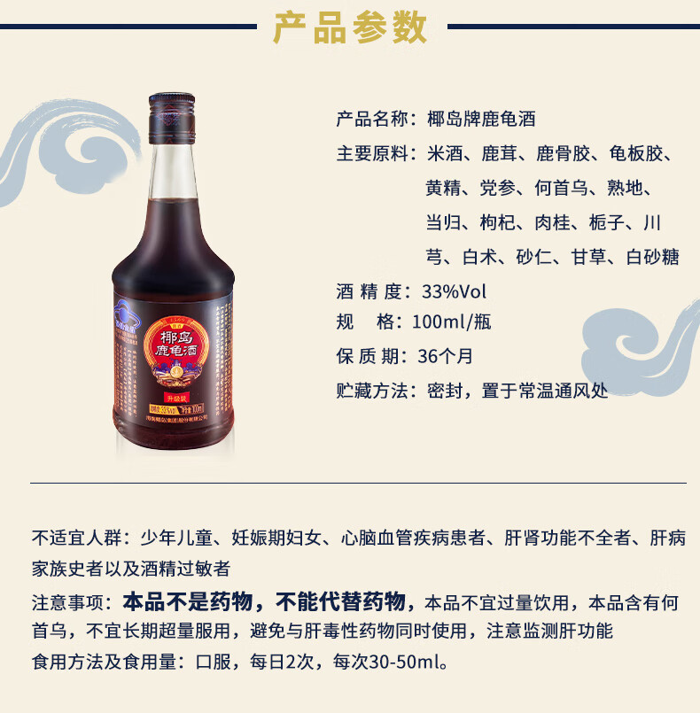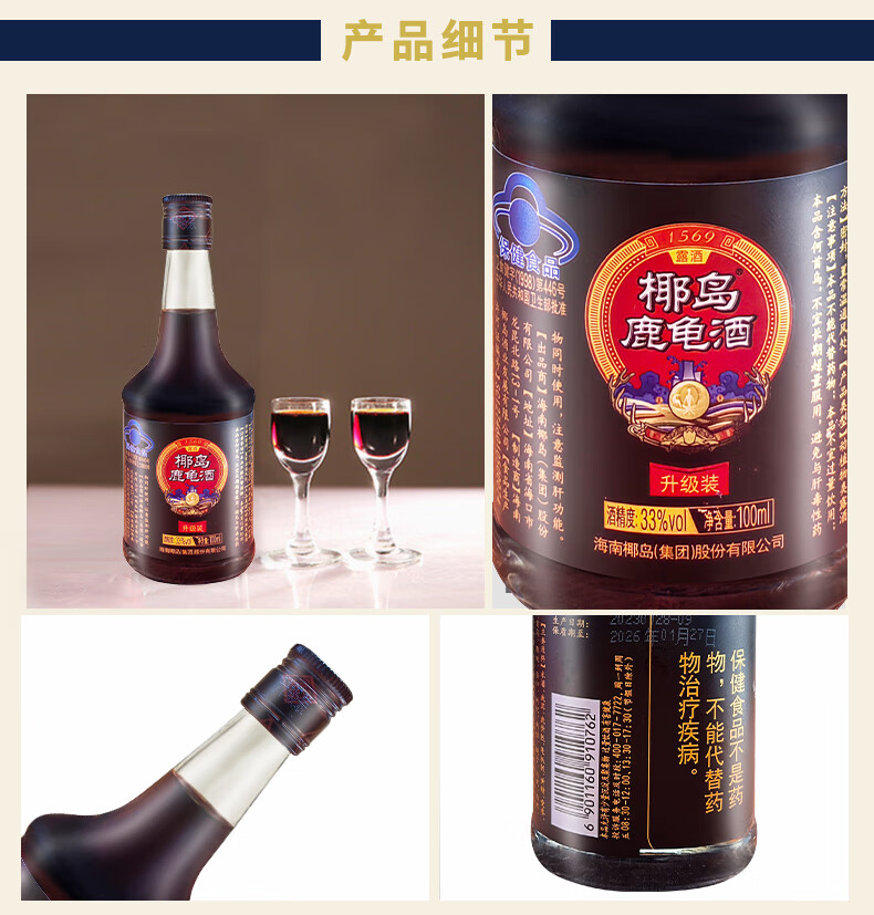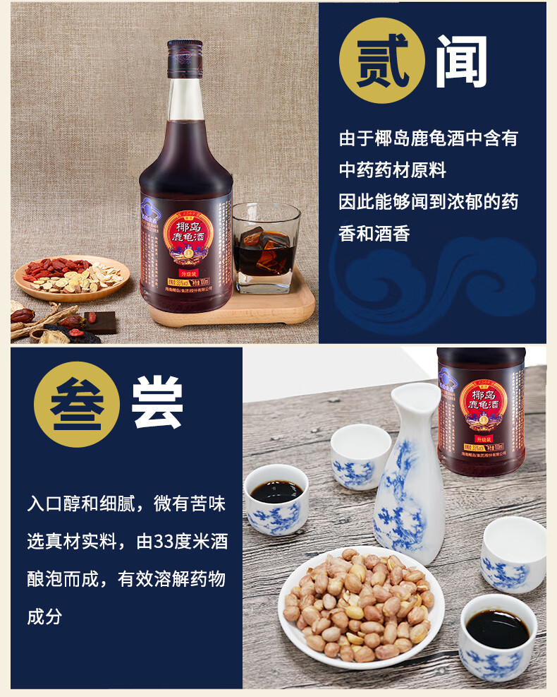 椰岛(YEDAO)鹿龟酒(升级装)33度100ml养生小酒 海南老字号