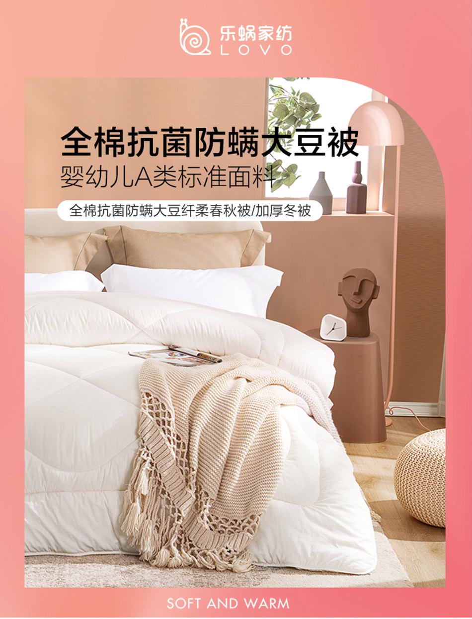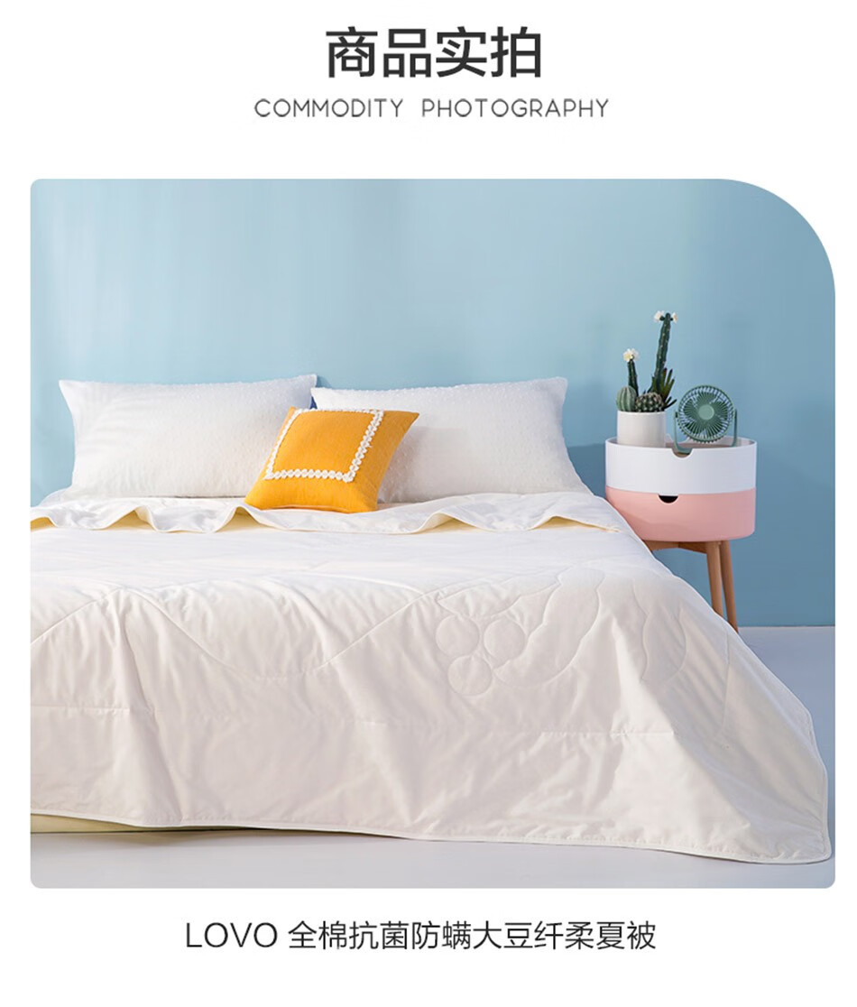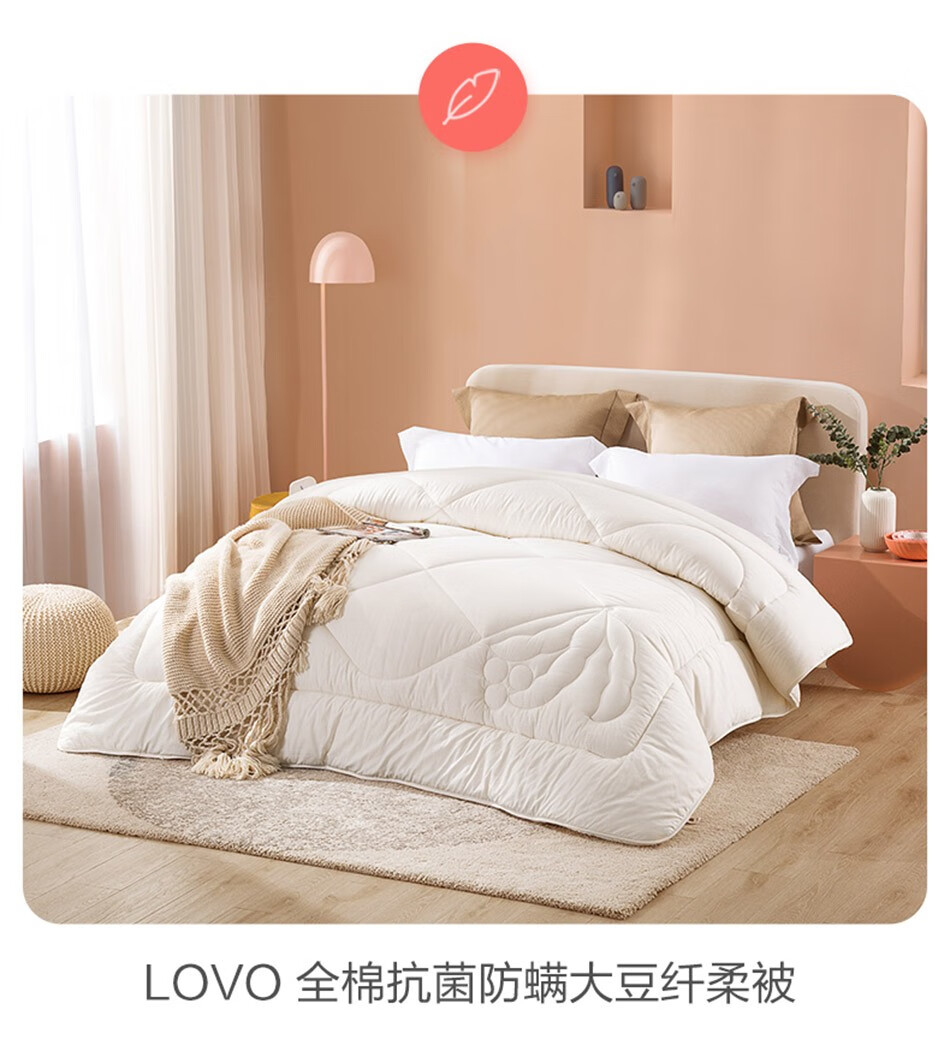 LOVO乐蜗家纺罗莱旗下 春秋被四季夏凉被全棉抗菌防螨大豆纤柔冬厚被 全棉抗菌防螨大豆纤柔春秋被 150*215cm