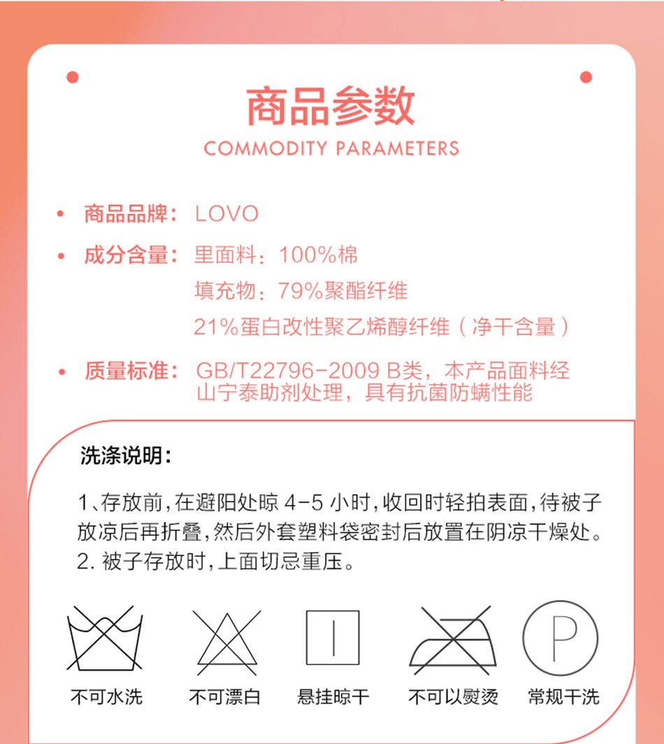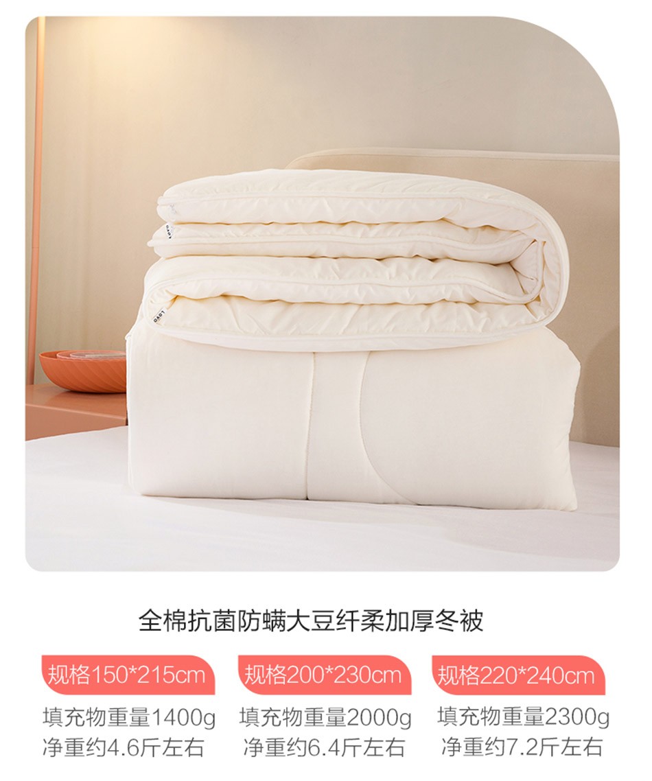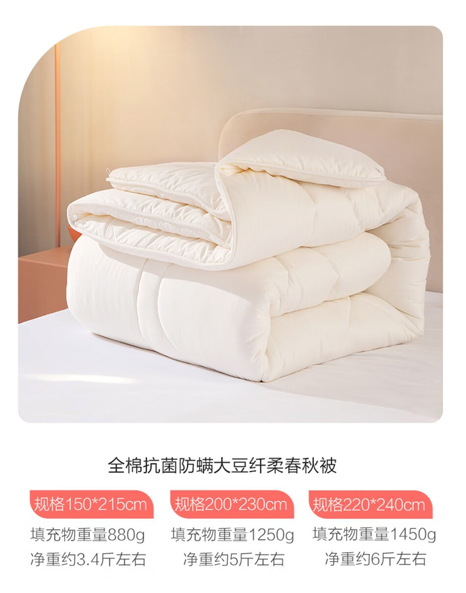 LOVO乐蜗家纺罗莱旗下 春秋被四季夏凉被全棉抗菌防螨大豆纤柔冬厚被 全棉抗菌防螨大豆纤柔春秋被 150*215cm