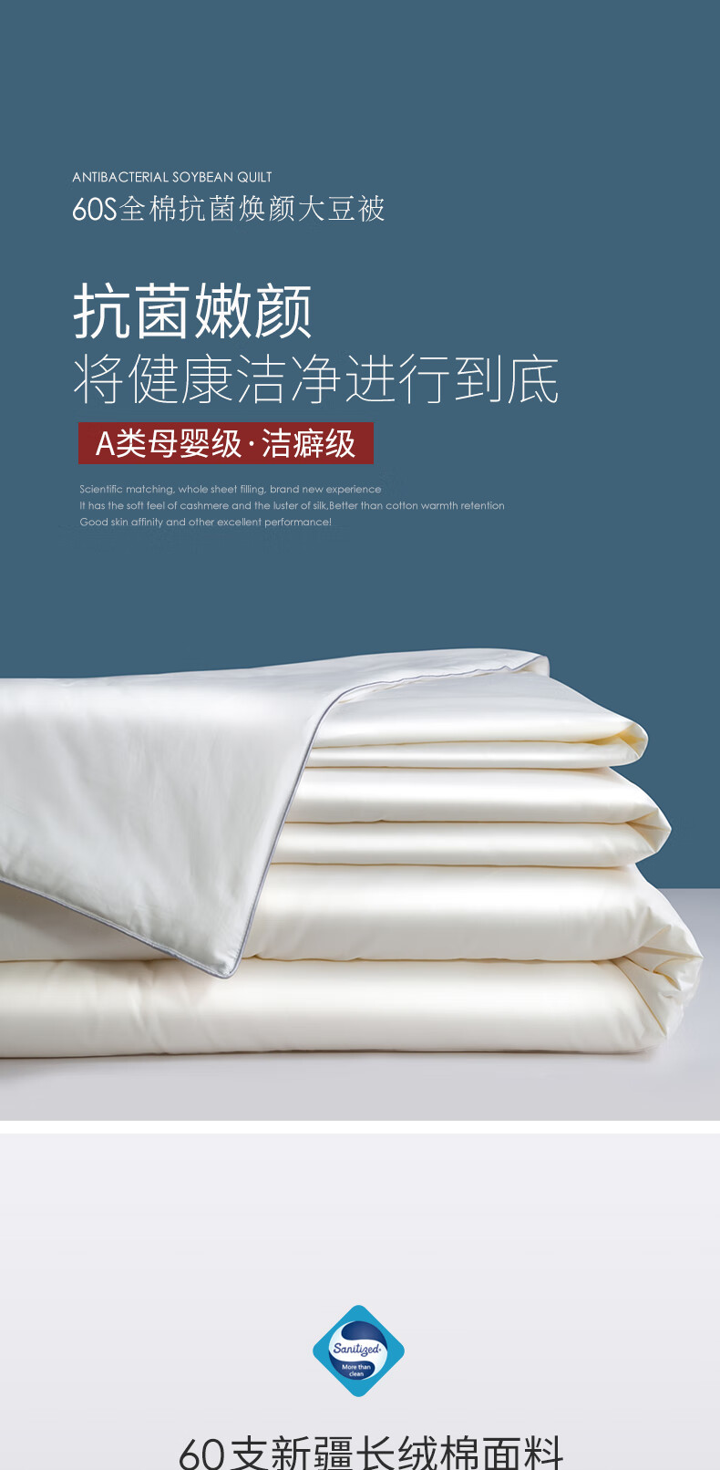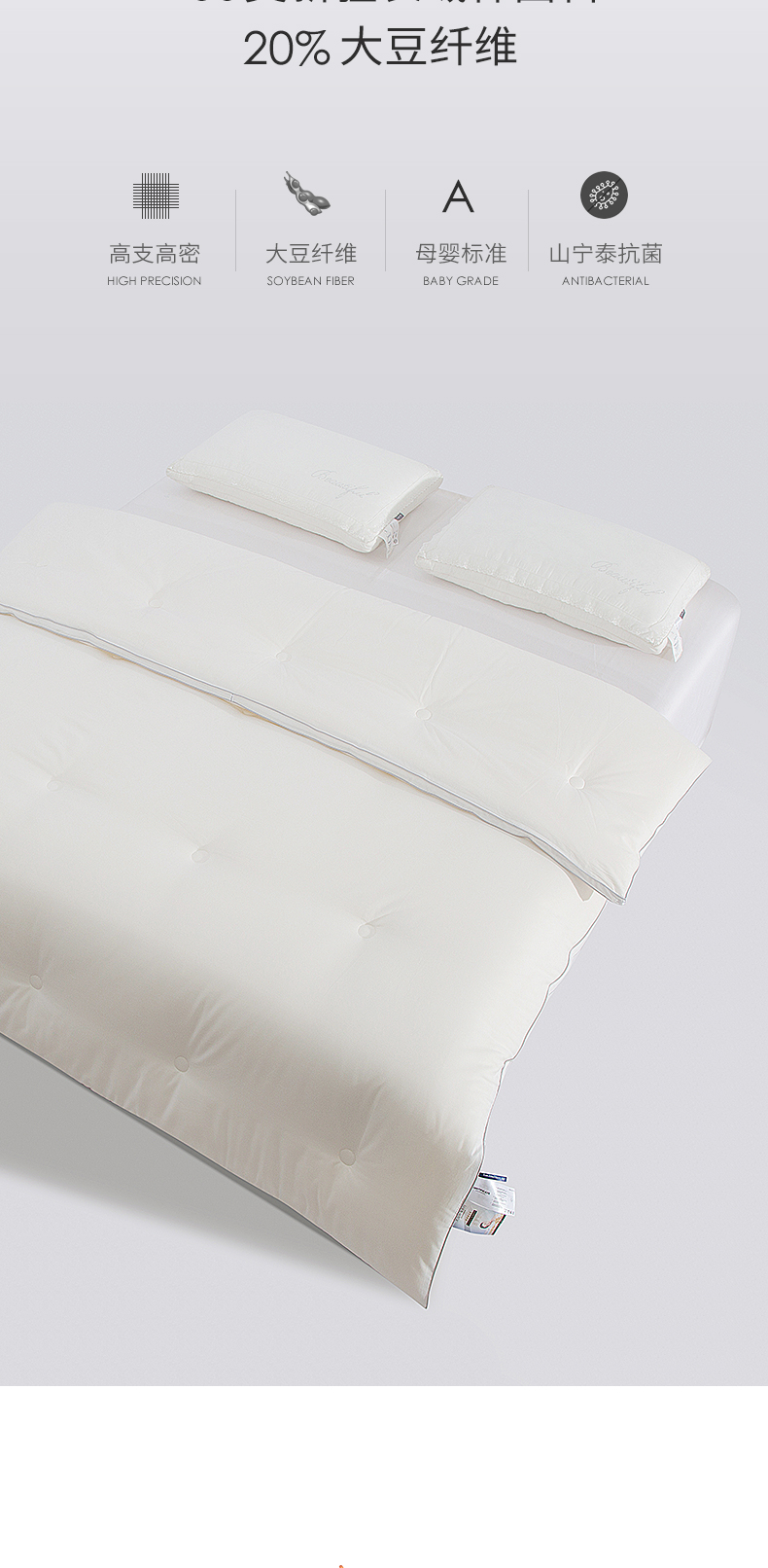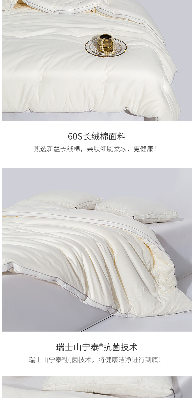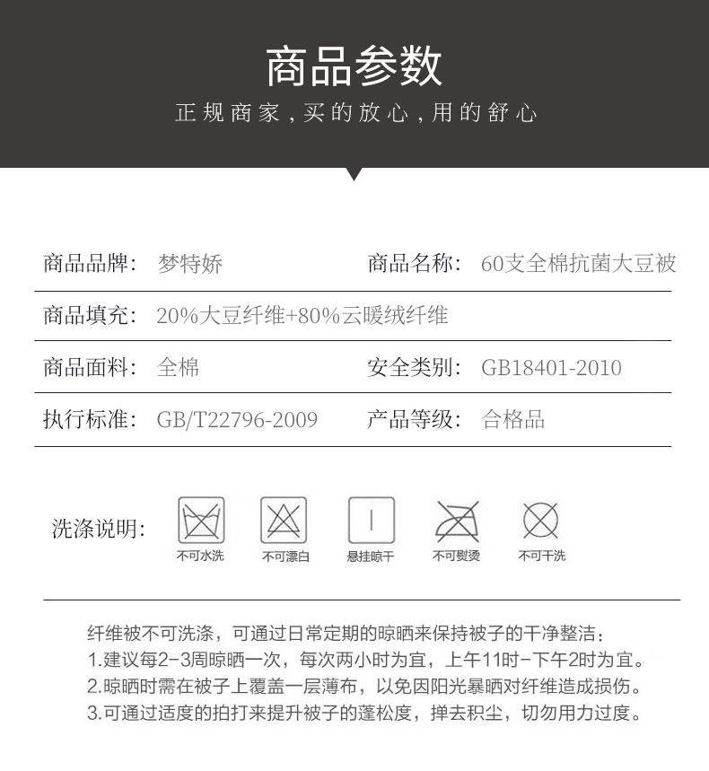 梦特娇 加厚冬被 全棉60S大豆纤维丝棉被子纯棉冬季被芯 白色150*200cm