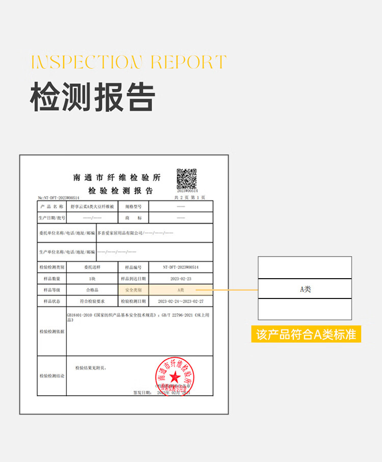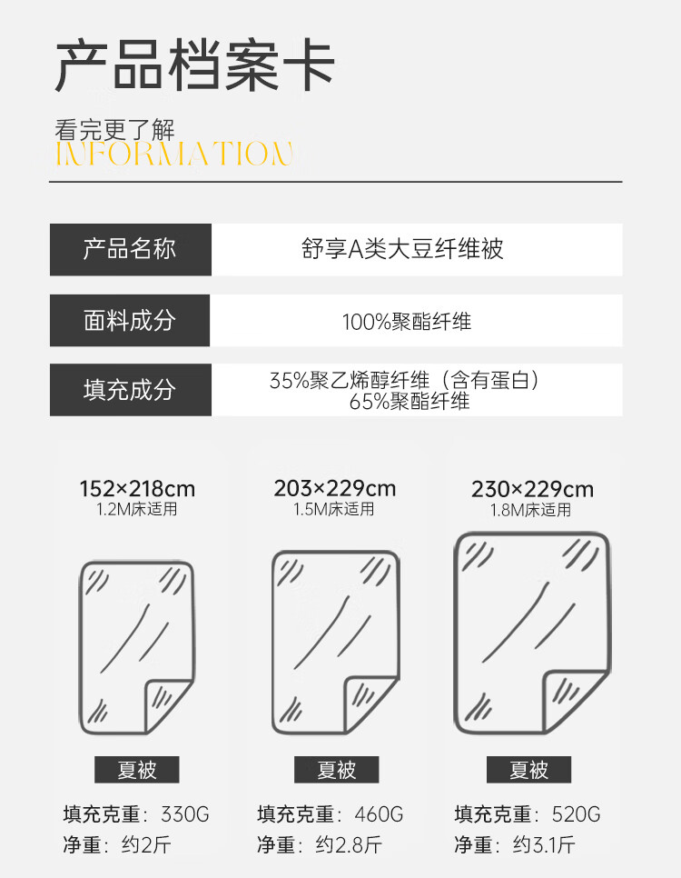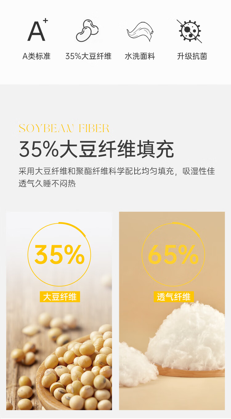 多喜爱被芯 35%大豆纤维春秋被 A类抗菌双人四季被子1.8/2.0床230*229cm