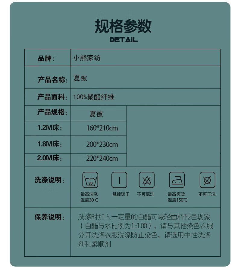 小熊家纺 浅夏BH-1301纯色水洗棉夏被200*230cm 京
