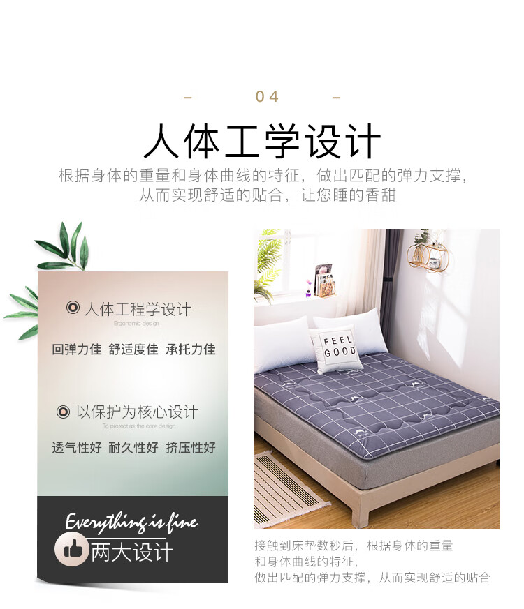 雅鹿·自由自在 床垫床褥子 四季加厚双人学生宿舍家用榻榻米可折叠软铺垫被1.8米床 180*200cm 胡子绅士