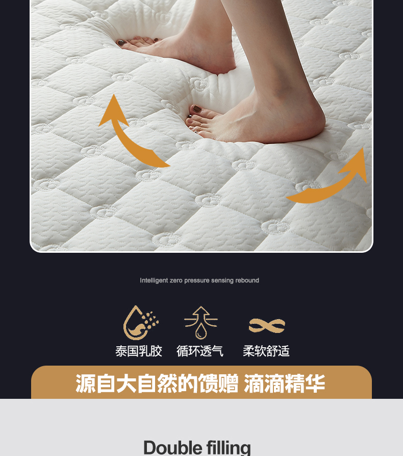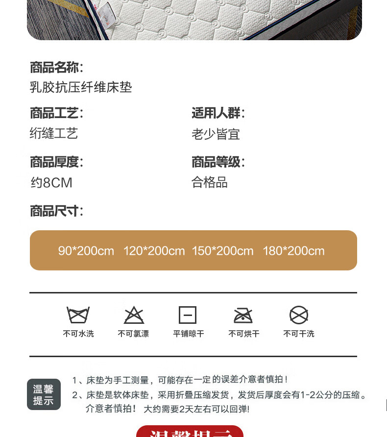 南极人NanJiren 泰国抗菌乳胶床垫 6D加厚立体150*200*8cm乳胶垫 榻榻米床垫双人1.5米床垫子