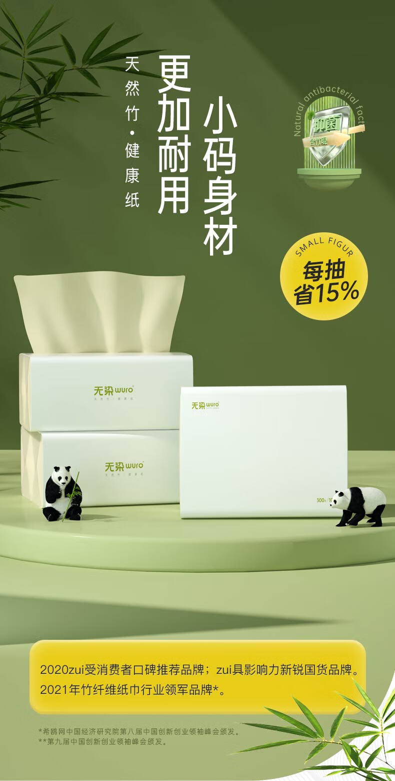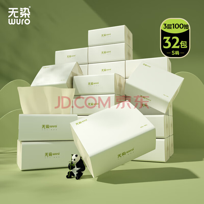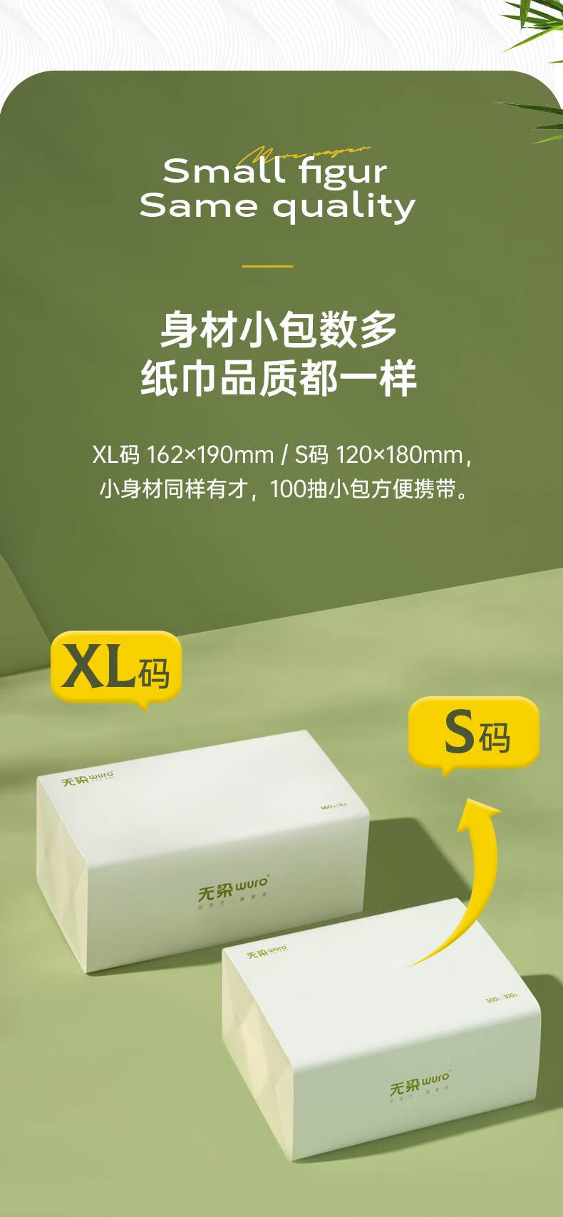 无染wuro竹浆抽纸家用纸巾实惠装整箱纸抽小号餐巾纸卫生纸32包100抽