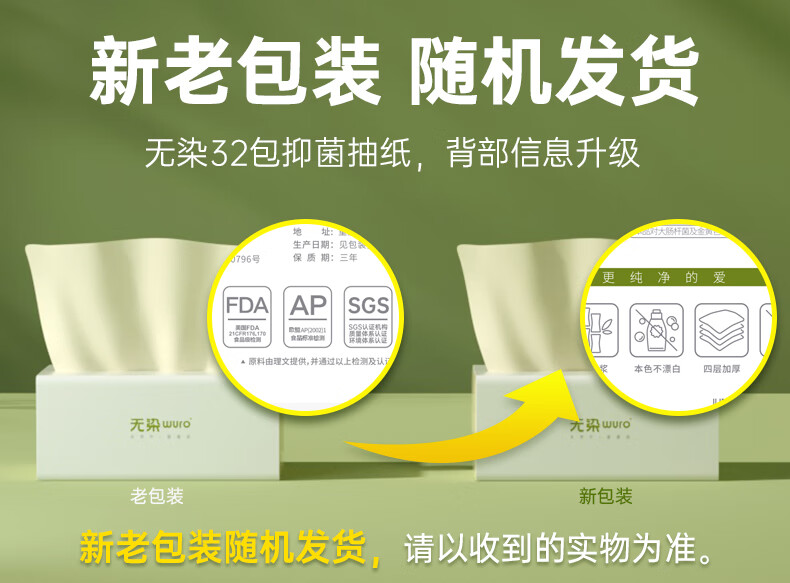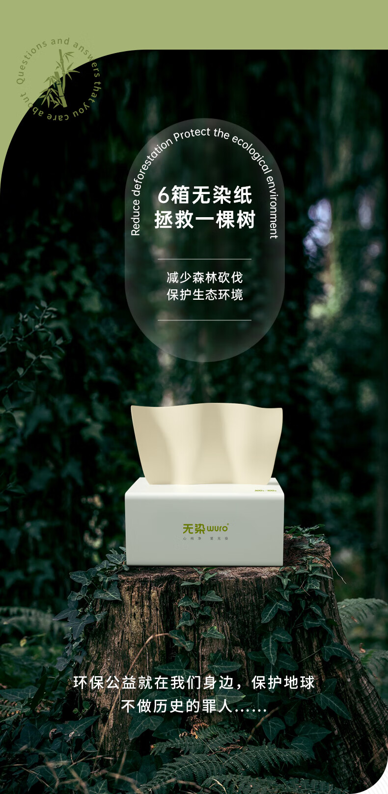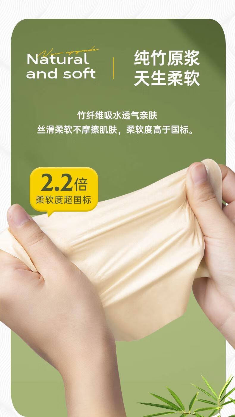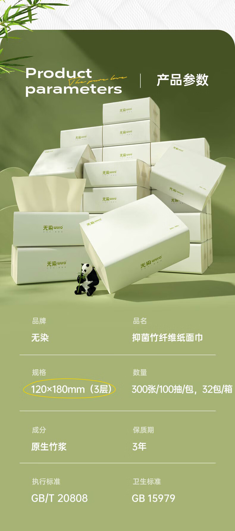 无染wuro竹浆抽纸家用纸巾实惠装整箱纸抽小号餐巾纸卫生纸32包100抽