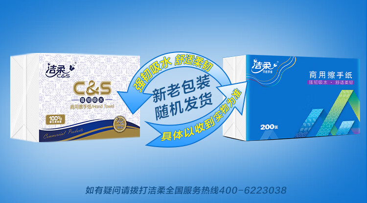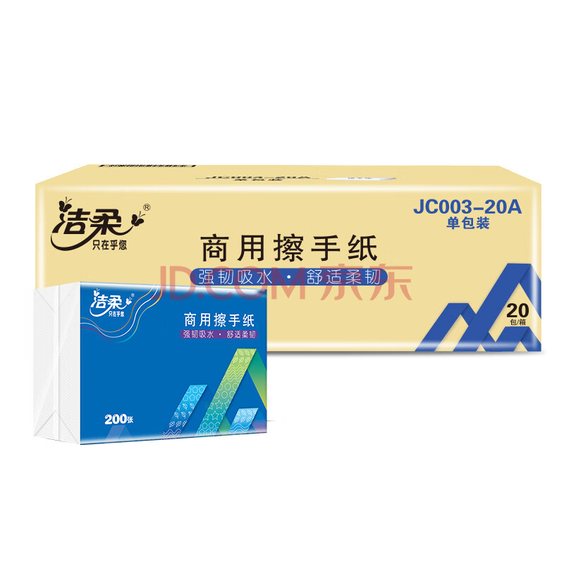 洁柔擦手纸 200抽*20包大规抽纸(卫生间酒店餐 厅卫生纸巾)商用纸