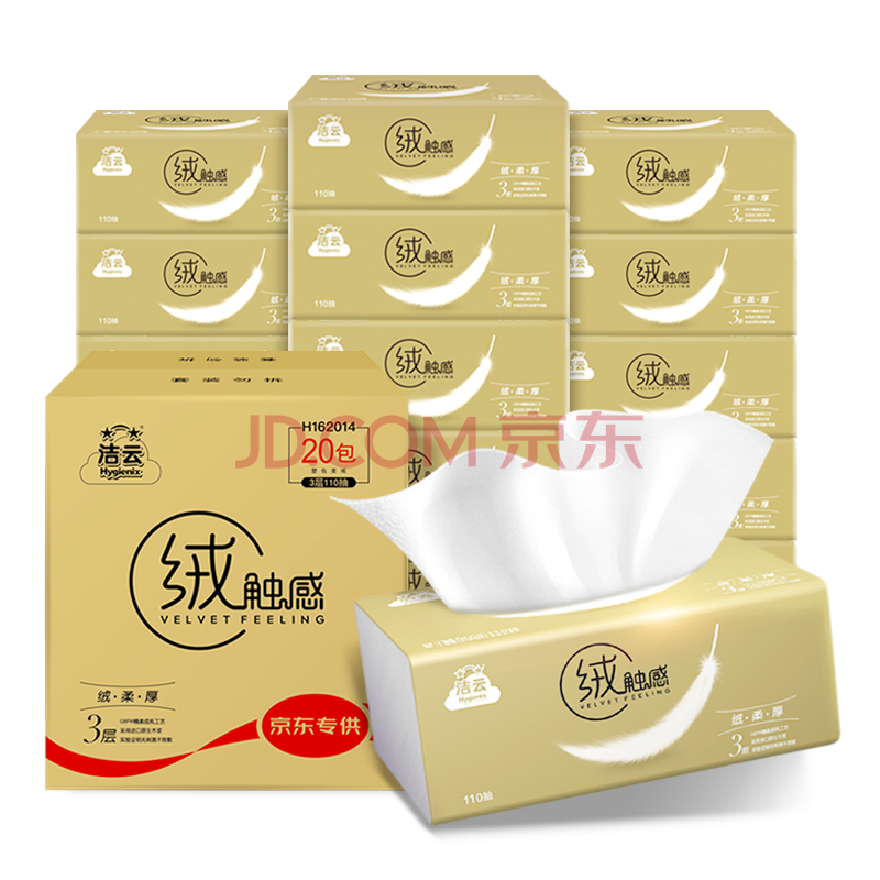 洁云抽纸绒触感330张3层软抽面巾纸20包 S码(110抽)整箱