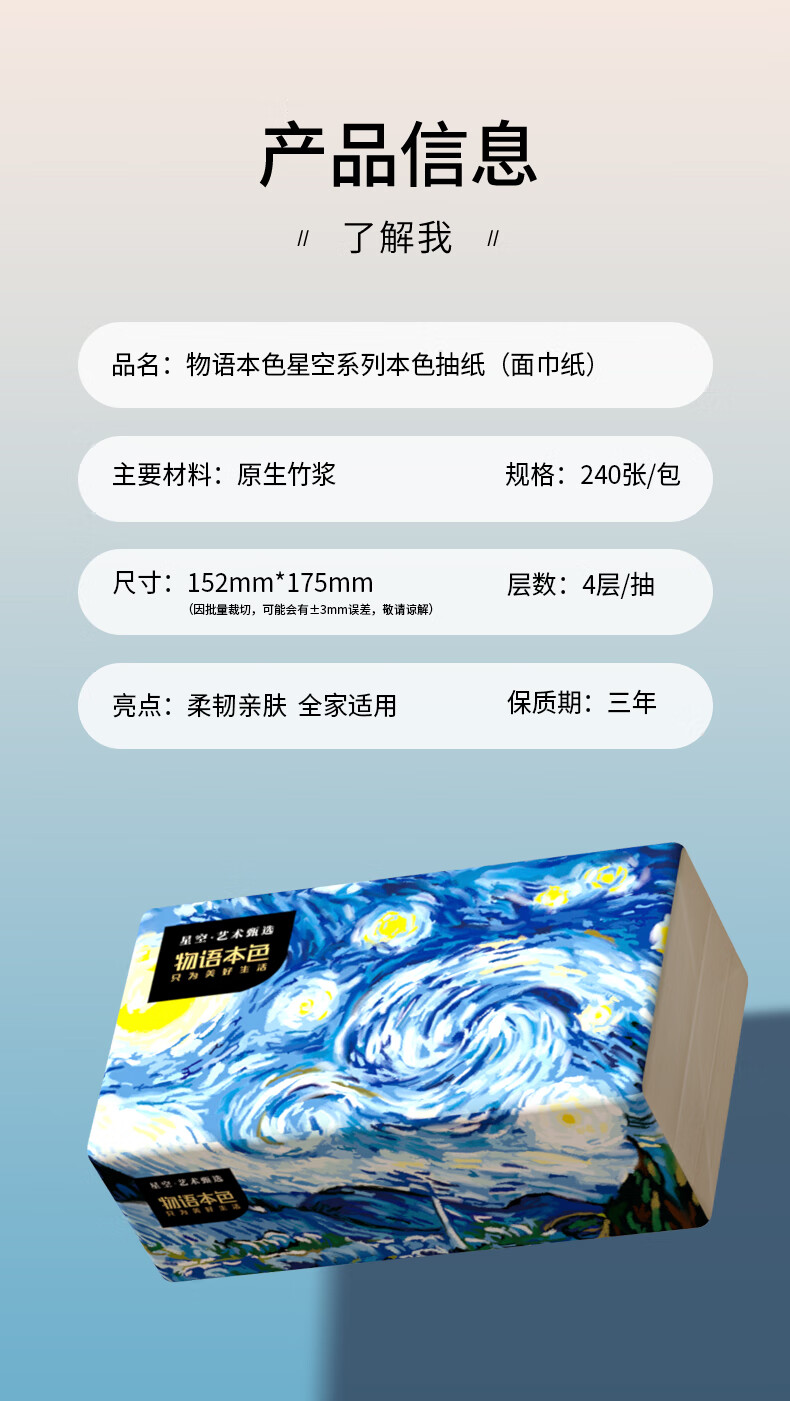 物语本色抽纸加厚加大4层60抽*24包天然竹浆无漂白餐巾纸面巾纸母婴可用