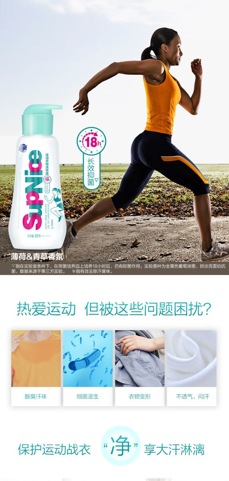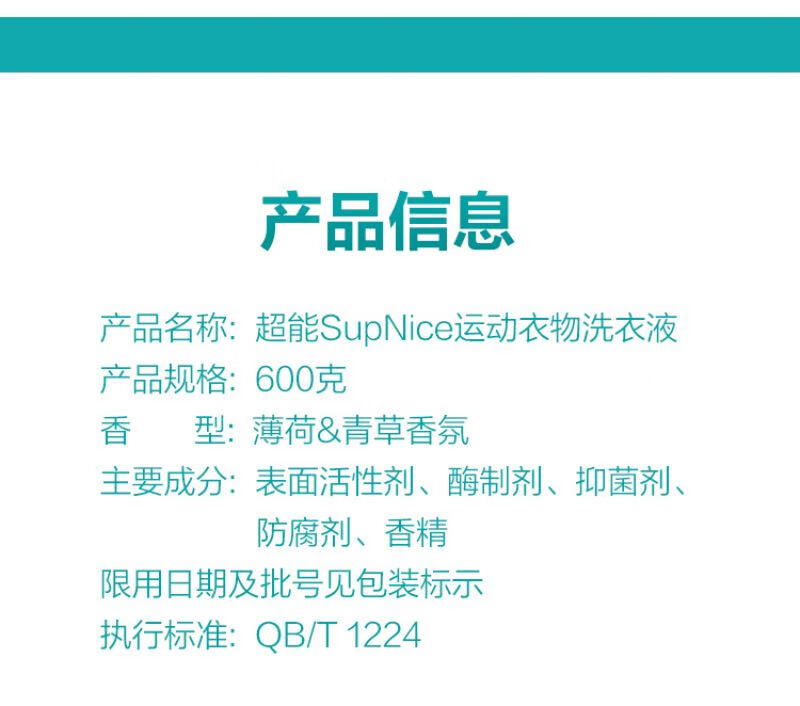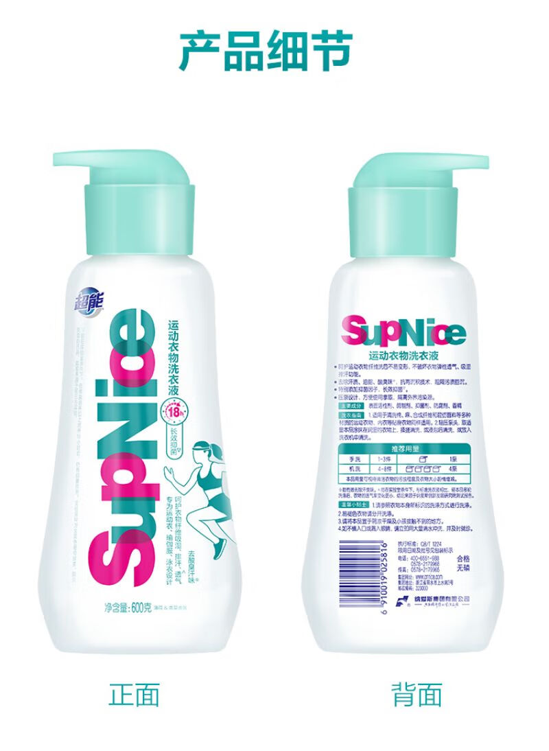 超能 600g supnice运动衣物洗衣液 长效抑菌深层洁净