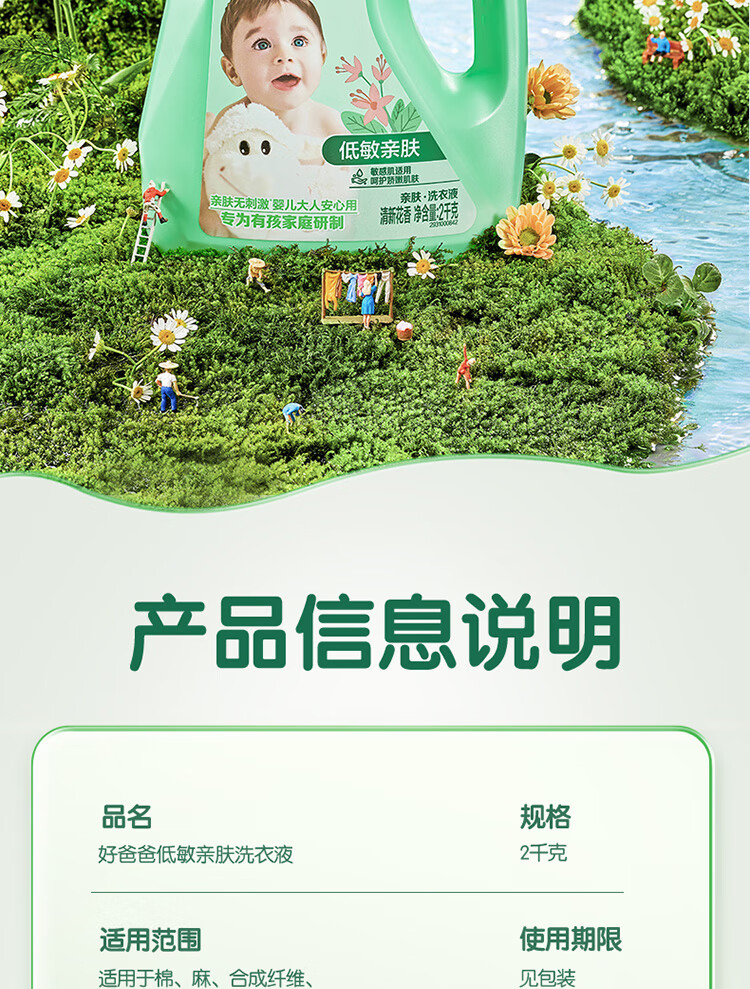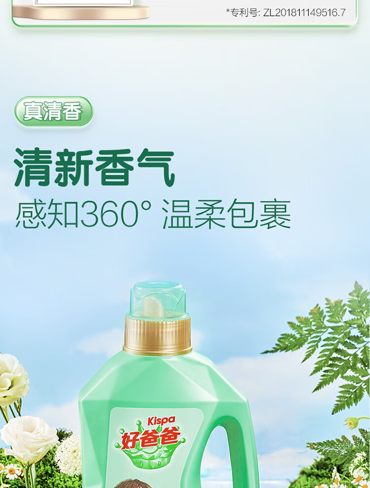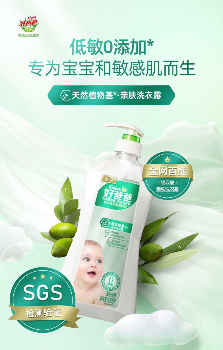 好爸爸Kispa天然亲肤洗衣液15.8斤 洗衣露 低敏亲肤 深层去渍 宝宝可用