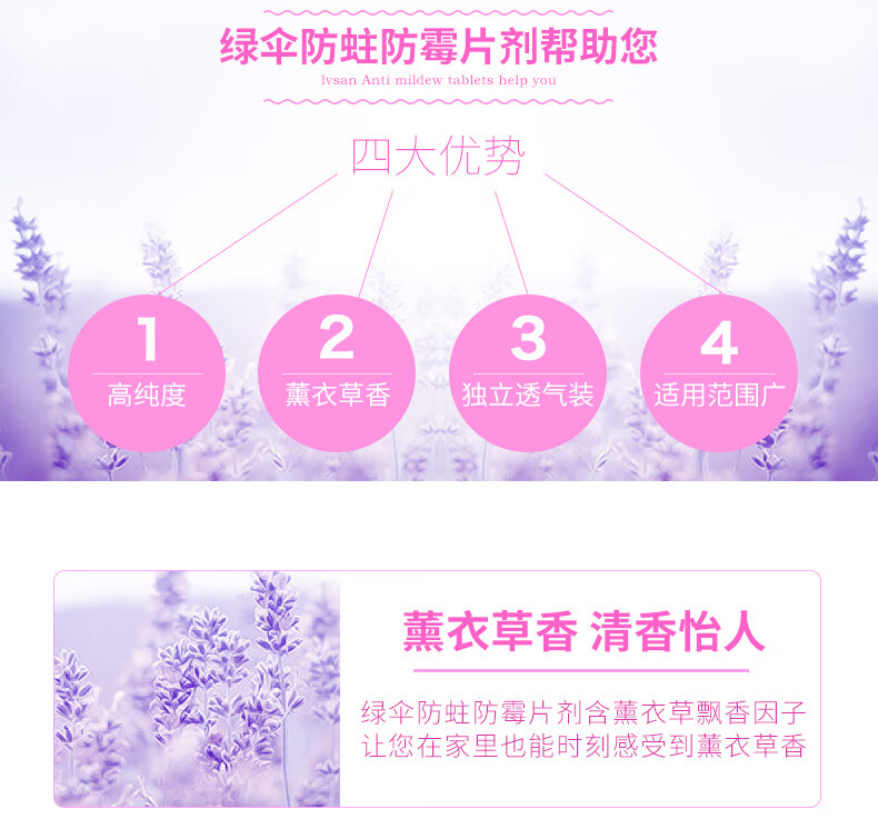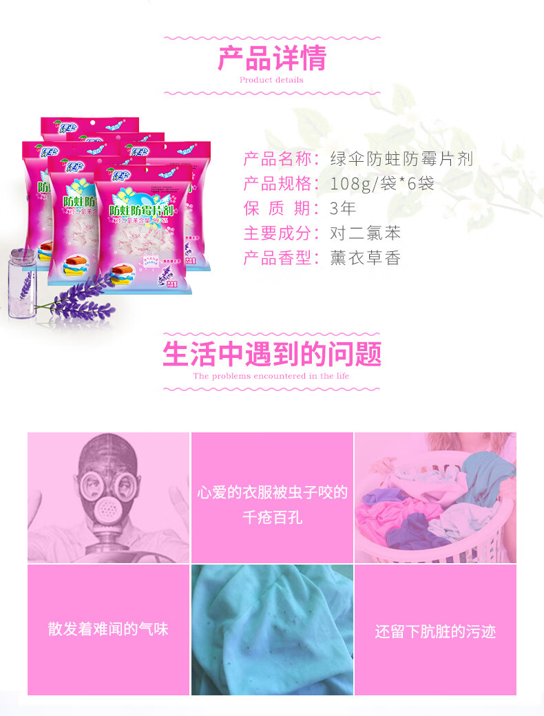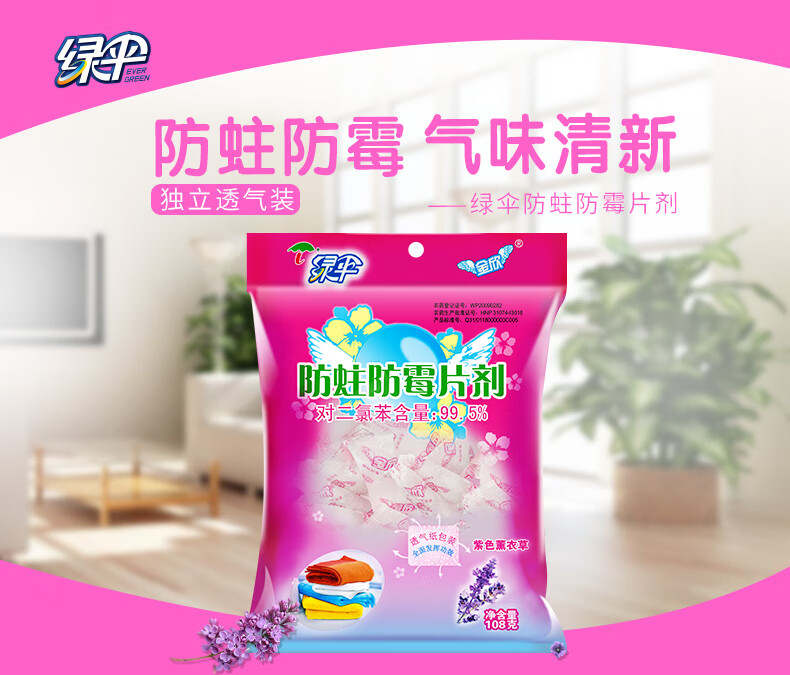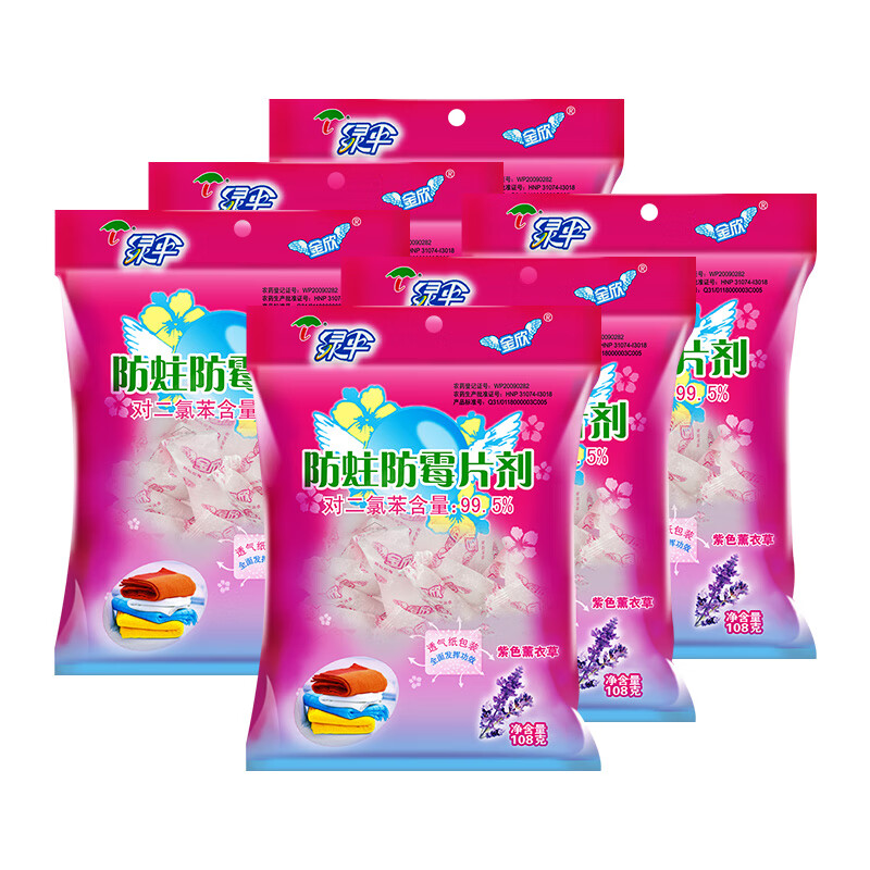 绿伞 防蛀防霉片剂108g*6袋(薰衣草香)驱虫衣橱衣柜衣物防潮除味