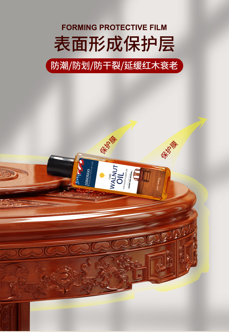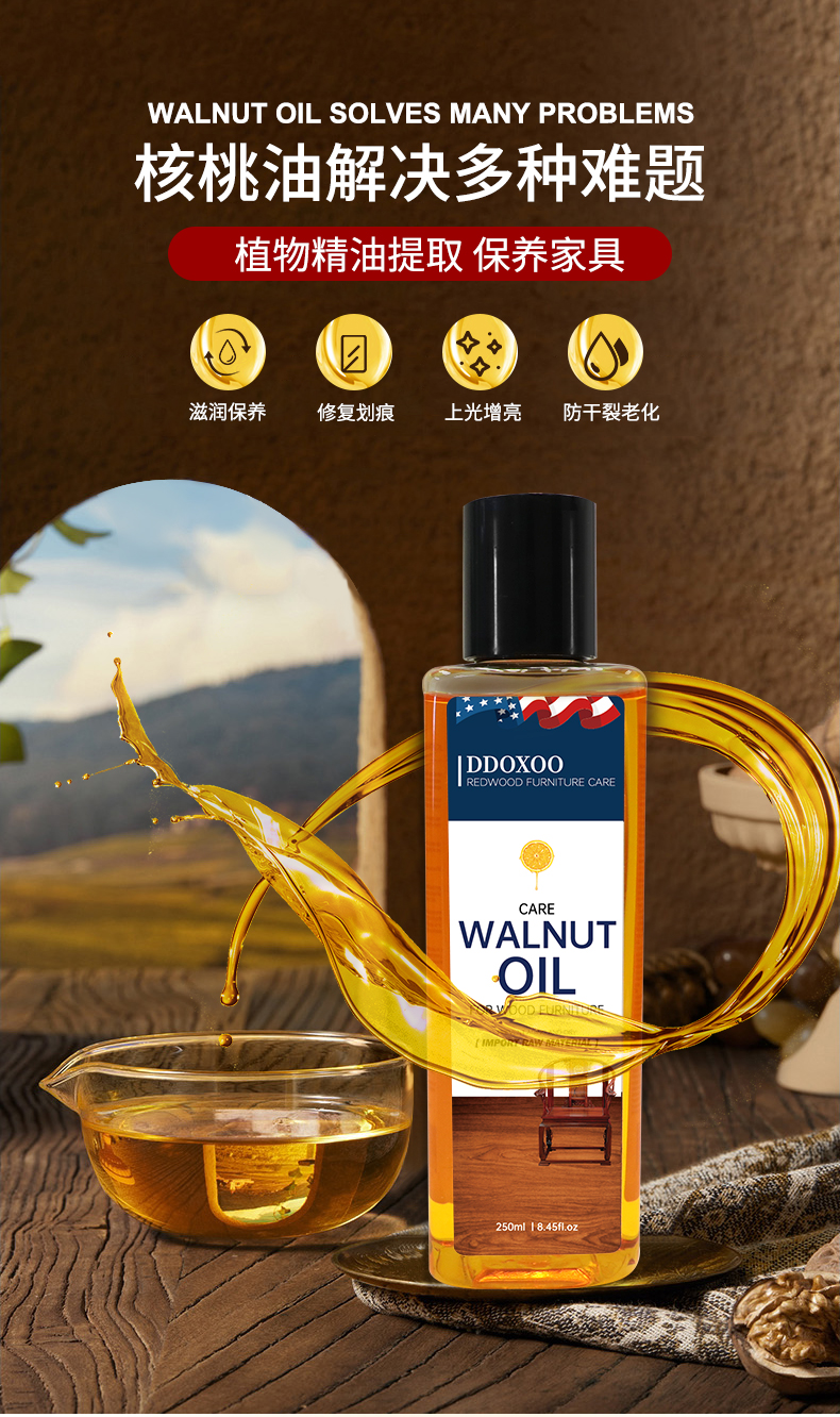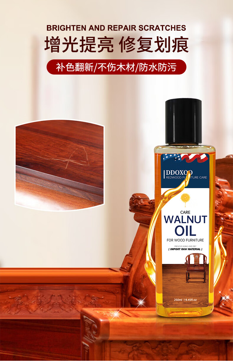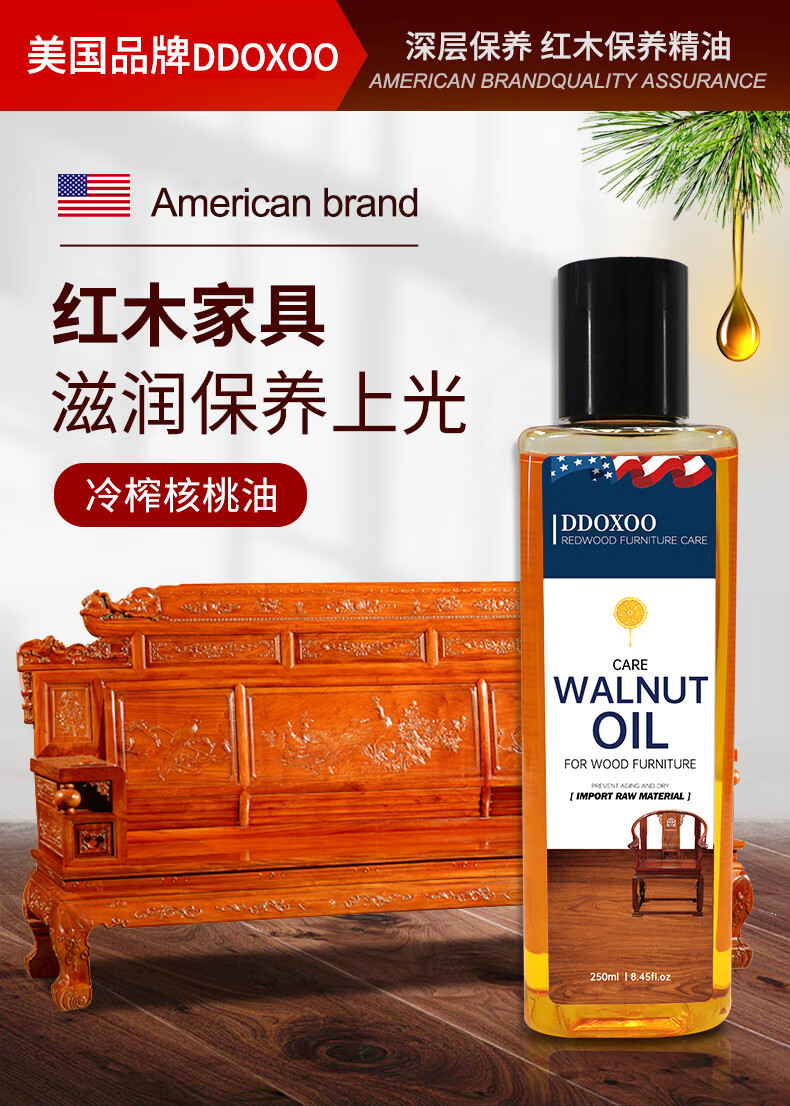 美国DDOXOO 核桃油家具 红木家具保养专用核桃油 家具实木地板护理精油文玩护理250ml*1瓶