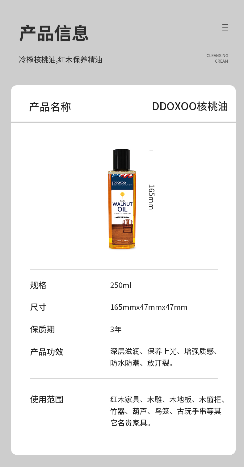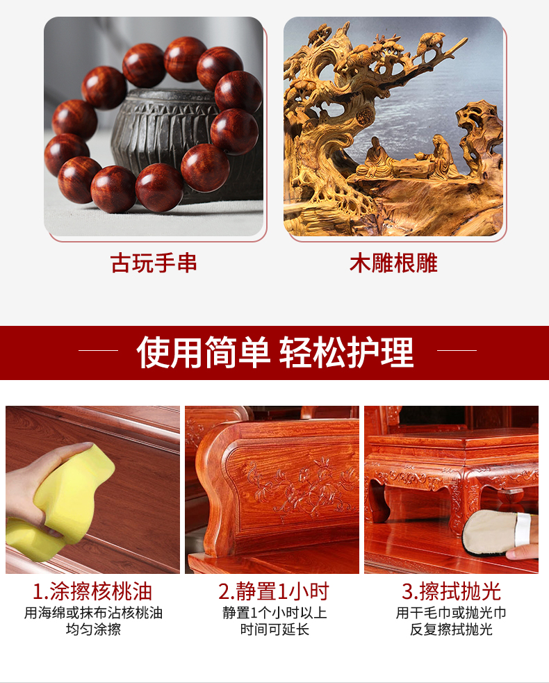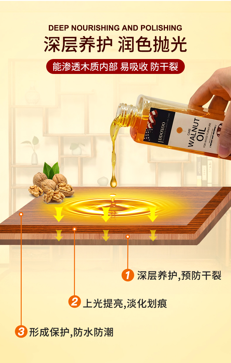 美国DDOXOO 核桃油家具 红木家具保养专用核桃油 家具实木地板护理精油文玩护理250ml*1瓶