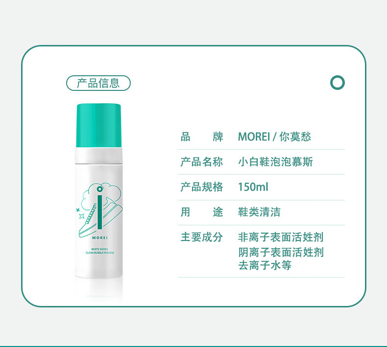 Morei 小白鞋泡泡慕斯 小白鞋清洁剂泡泡慕斯刷鞋擦鞋洗鞋神器去黄去污清洗球鞋子清洁剂 清洁泡泡慕斯150ml