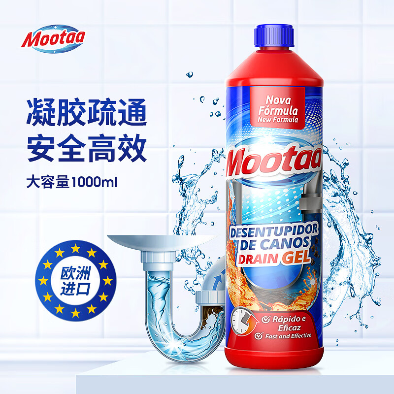 膜太(MOOTAA)欧洲进口管道疏通剂卫生间厨房地漏下水道强力溶解疏通剂1000ml*1