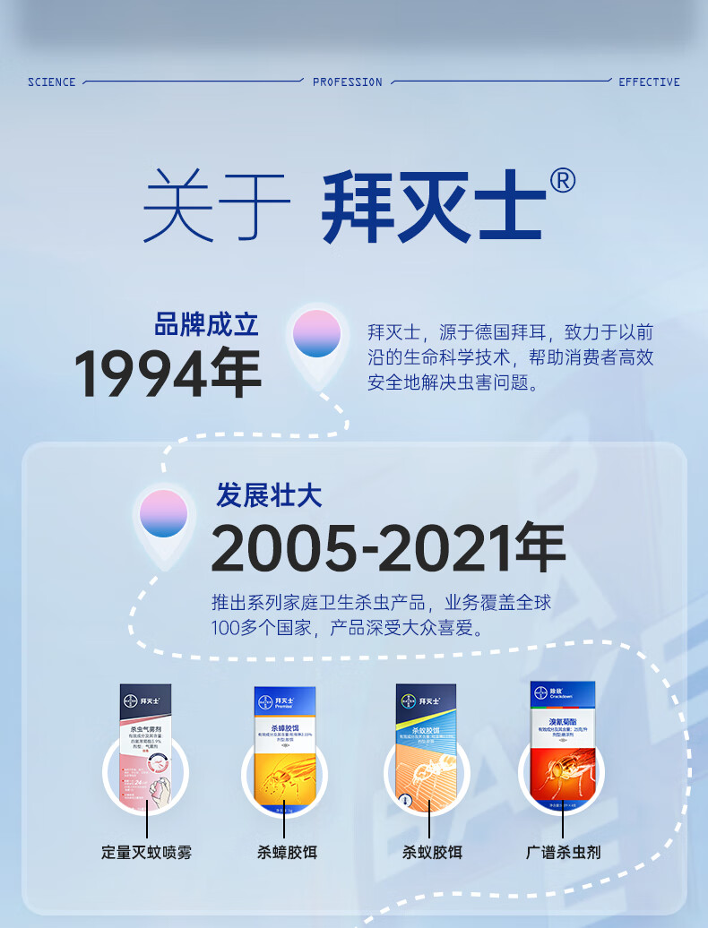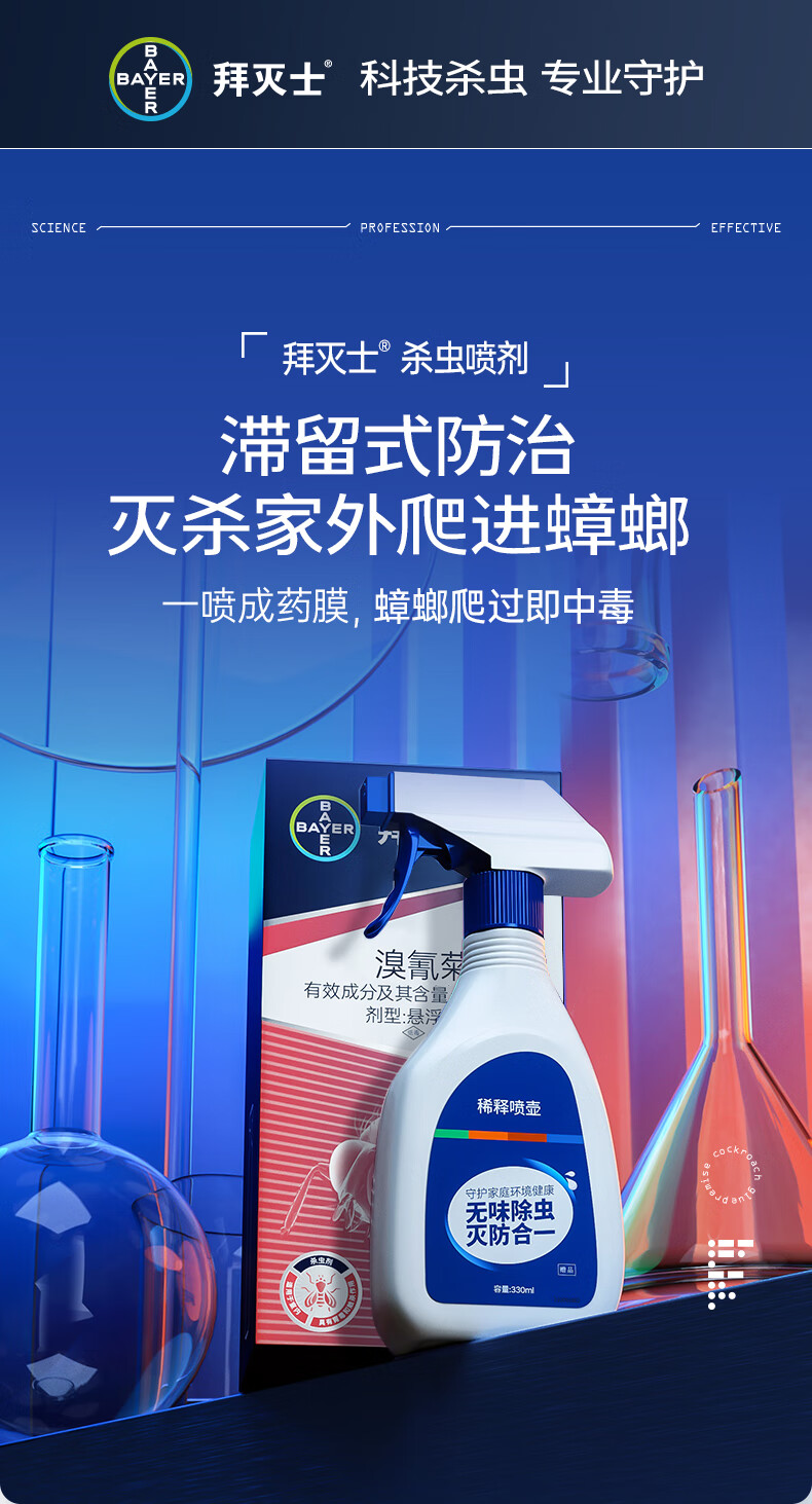 拜耳拜灭士蟑螂药全窝端灭蟑螂喷雾跳蚤专用杀虫剂 除敌5ml× 4支