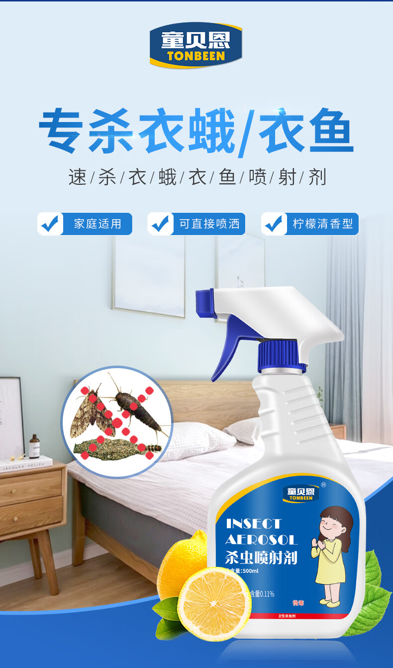 童贝恩灭衣鱼虫专杀家用药除衣蛾杀虫剂诱杀衣鱼杀鱼衣虫衣娥喷雾净飞蛾专杀衣蛾虫的幼虫药剂小飞蛾克星