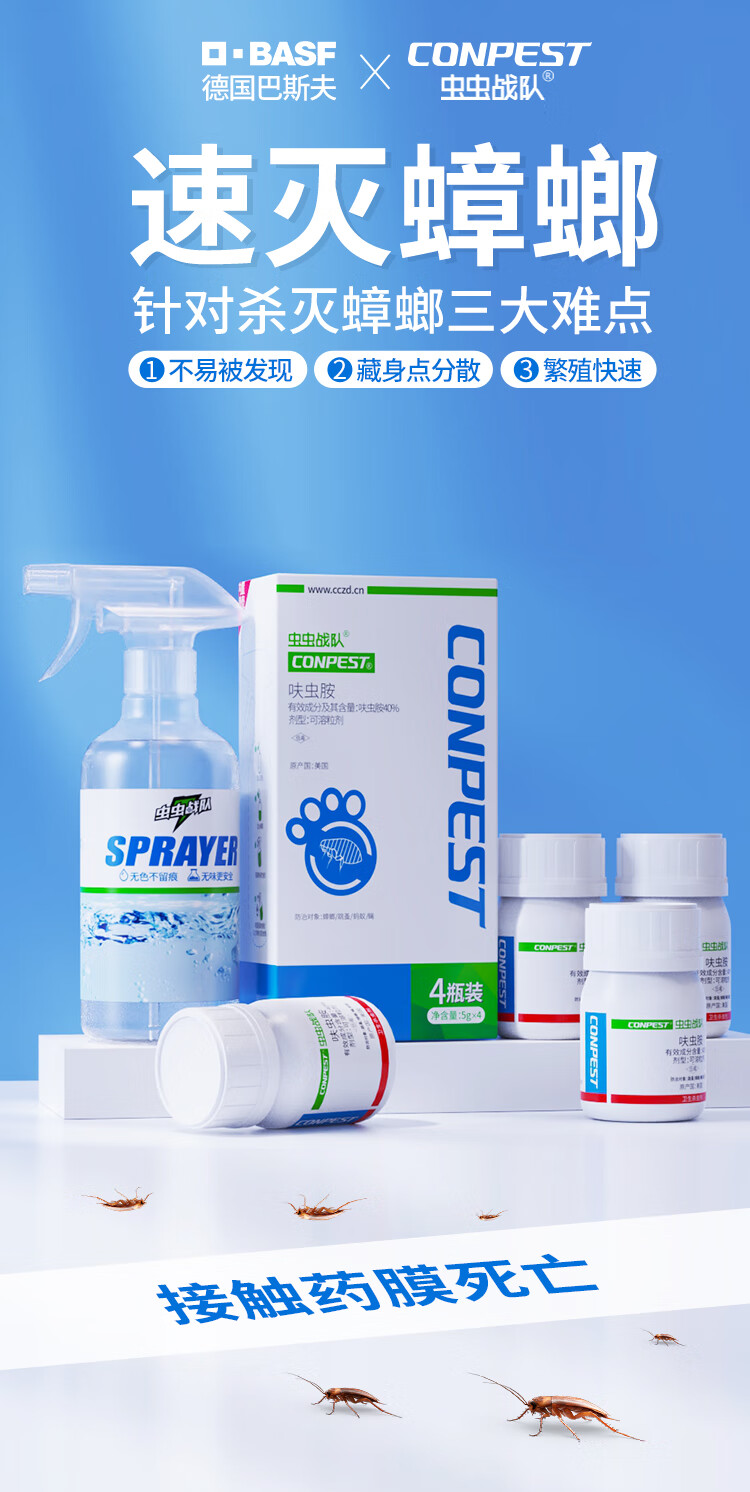 虫虫战队呋虫胺蟑螂药杀虫剂灭蟑螂除蟑螂喷雾喷剂家用室内全窝端 4瓶装