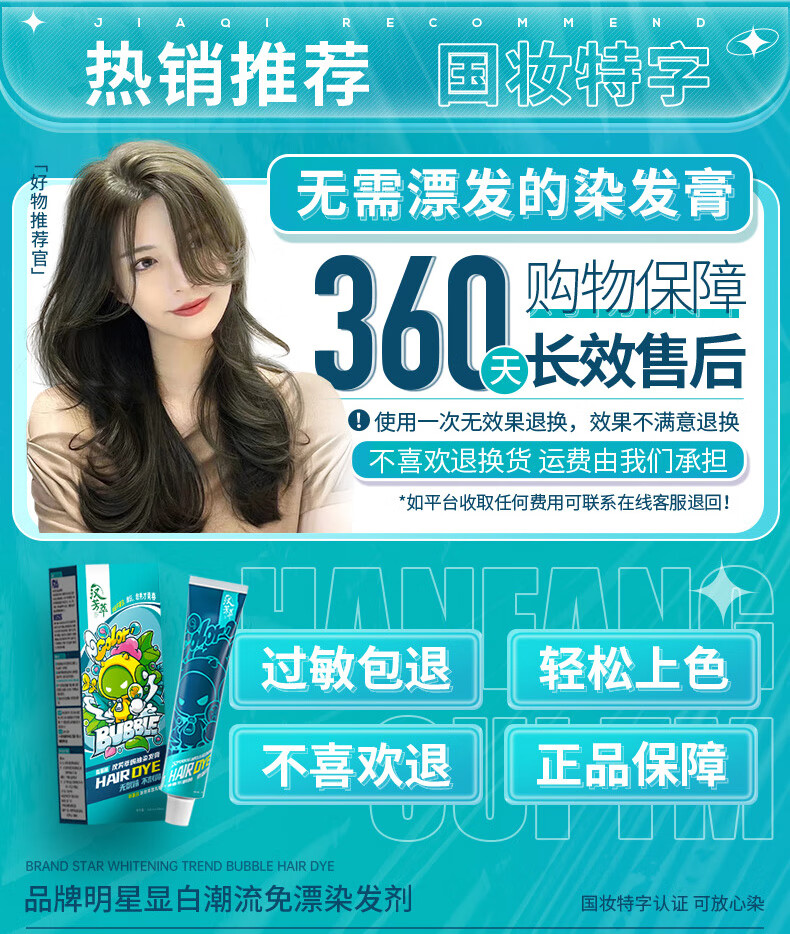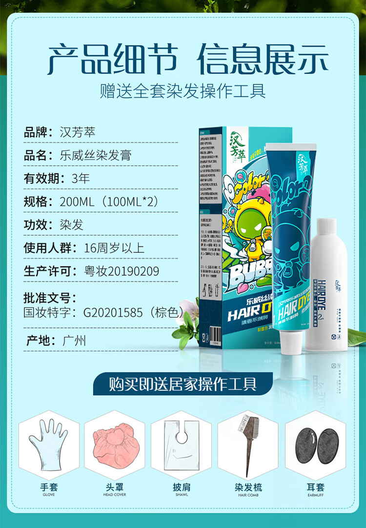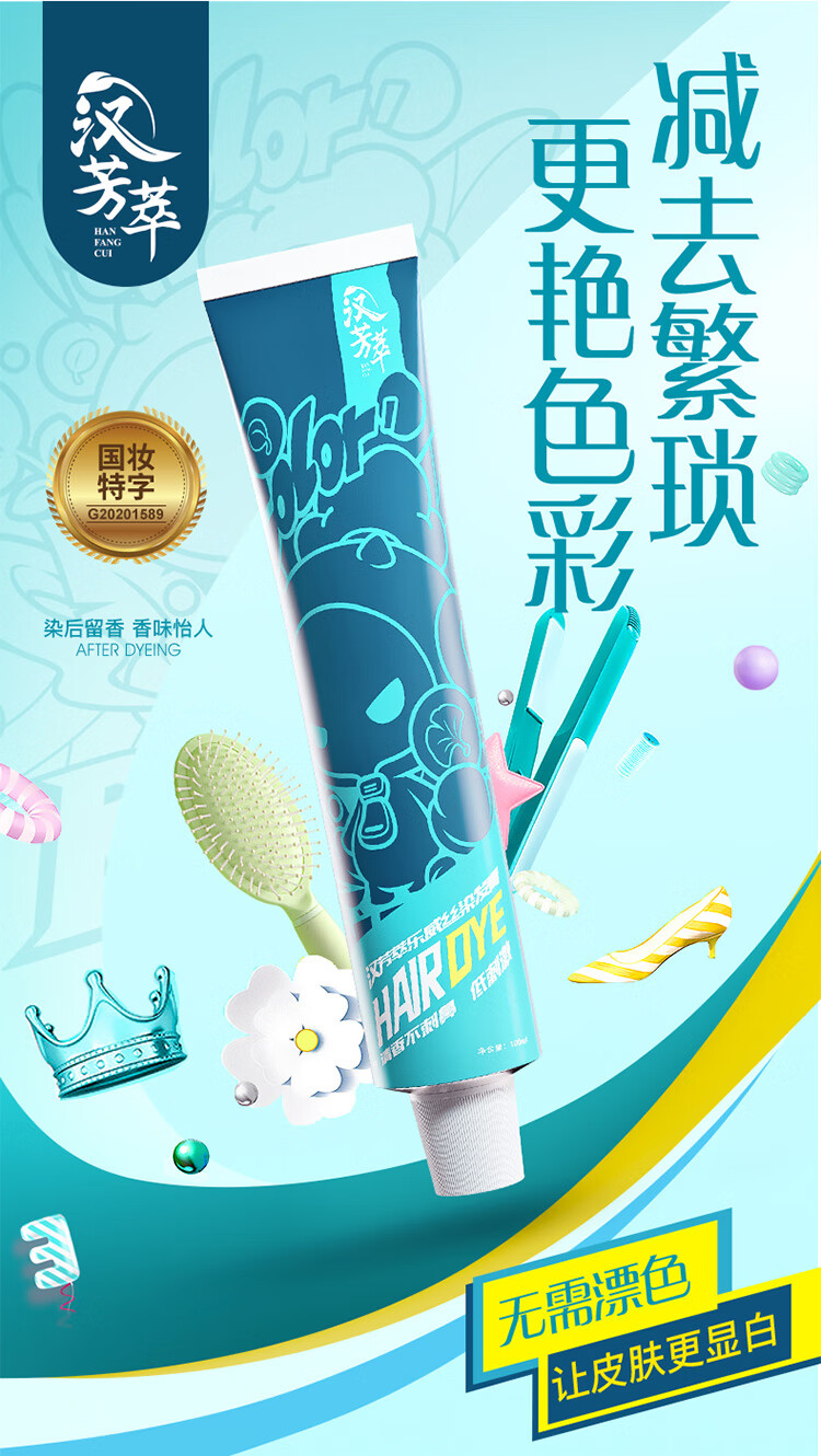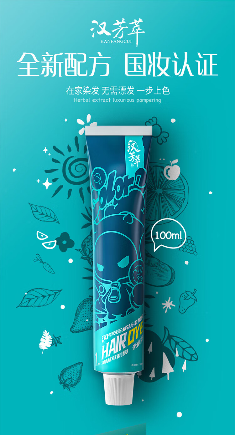 汉芳萃(HANFANGCUI)染发剂植物潮色染发膏焗油膏男女士染头发遮白发非泡泡染-黑紫色
