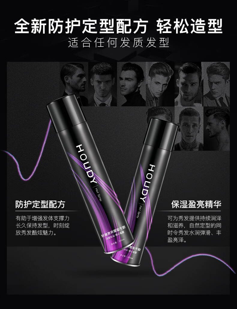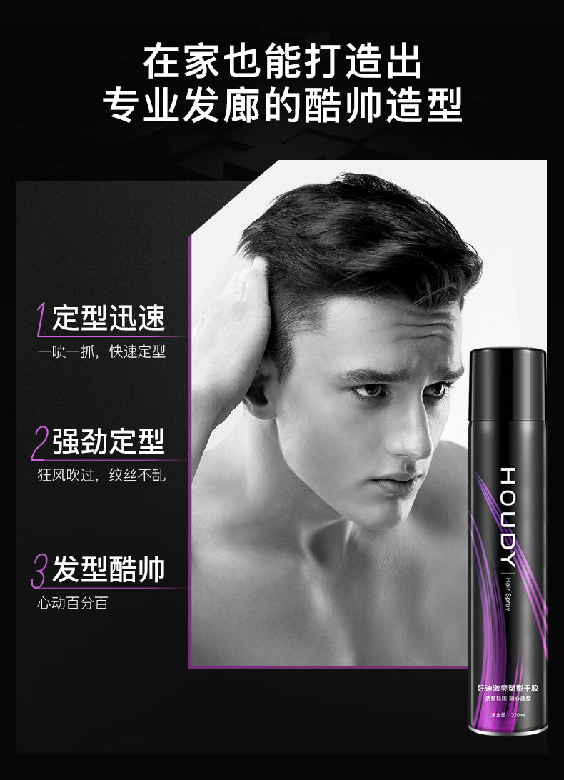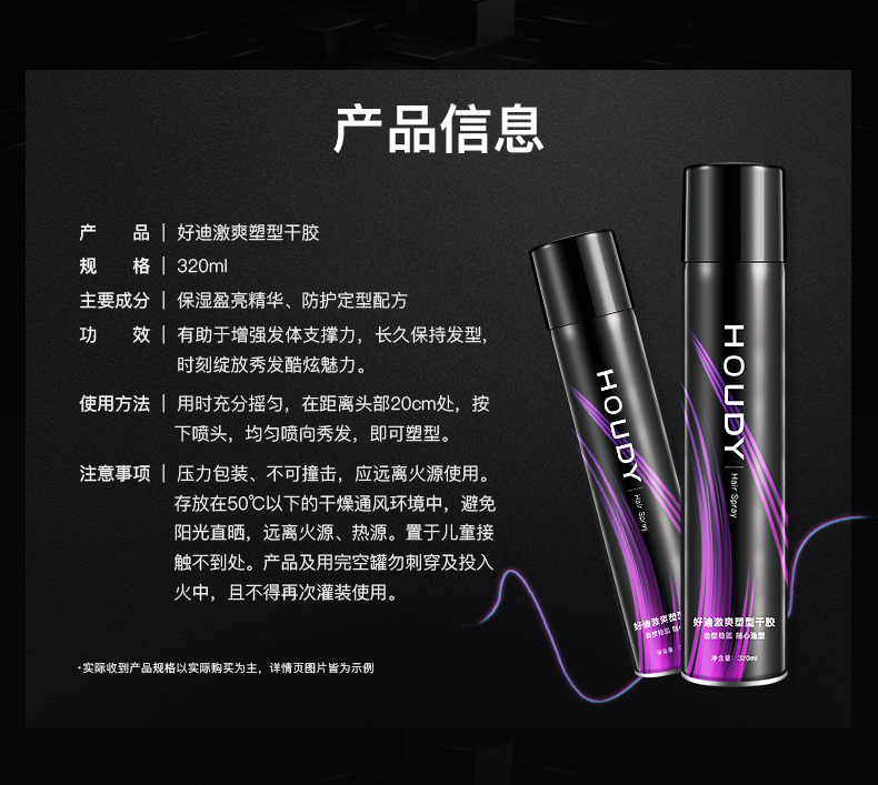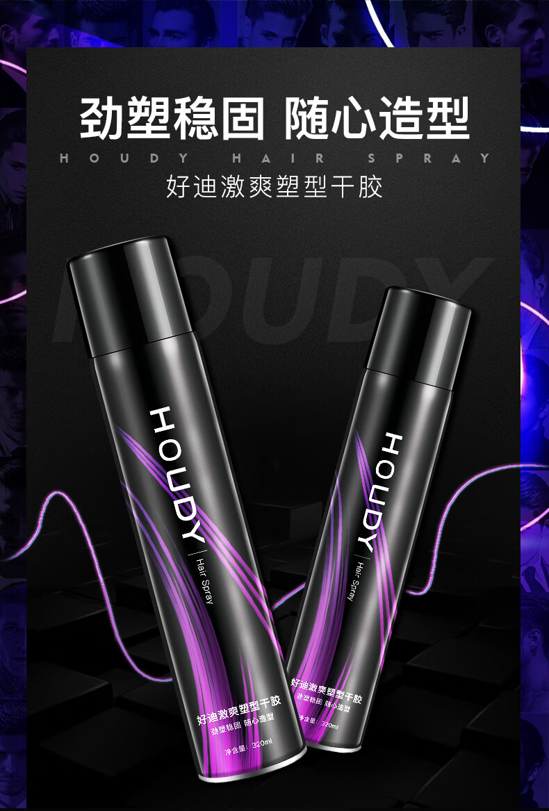好迪定型喷雾女士卷发男士发胶激爽塑型干胶持久碎发蓬松清香320ml