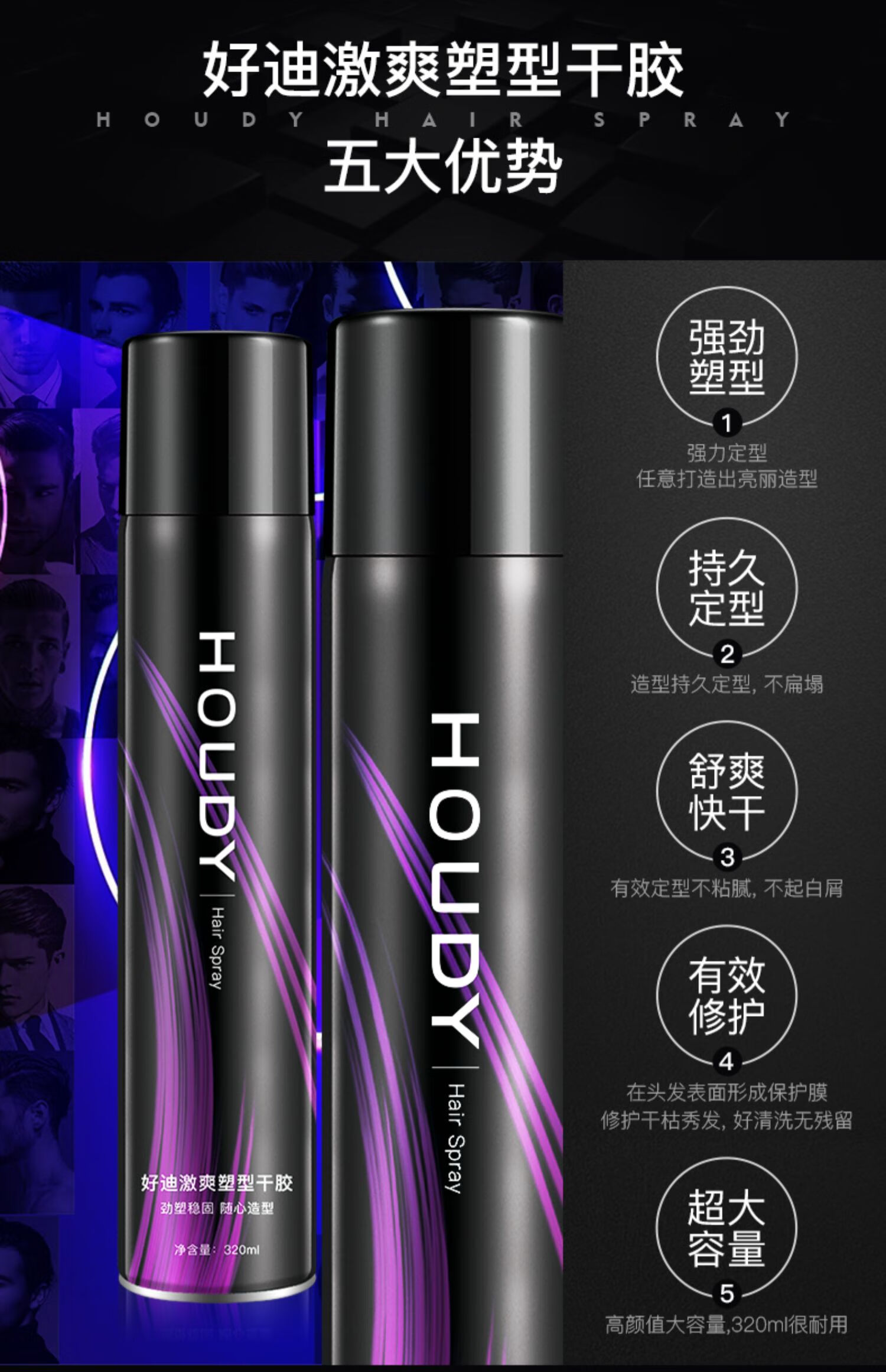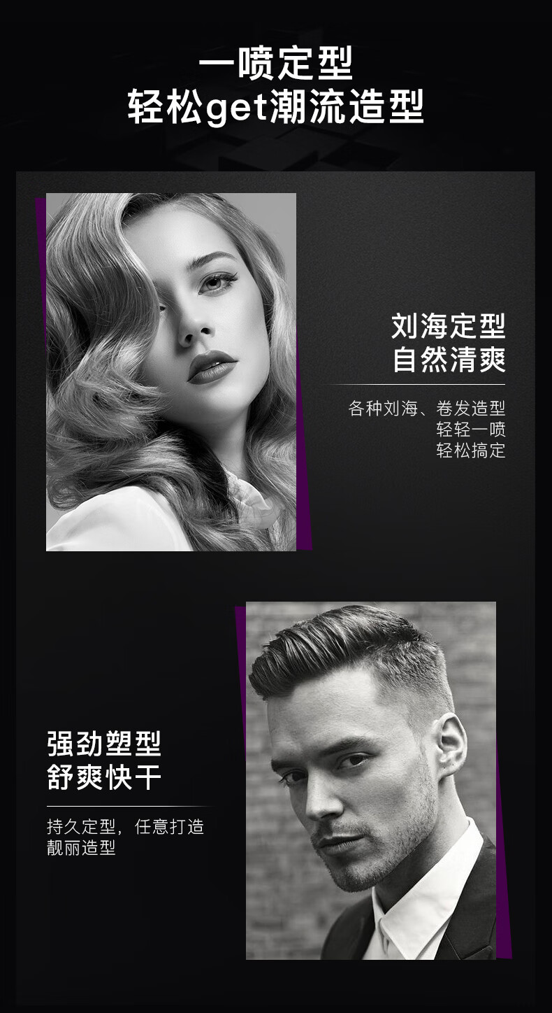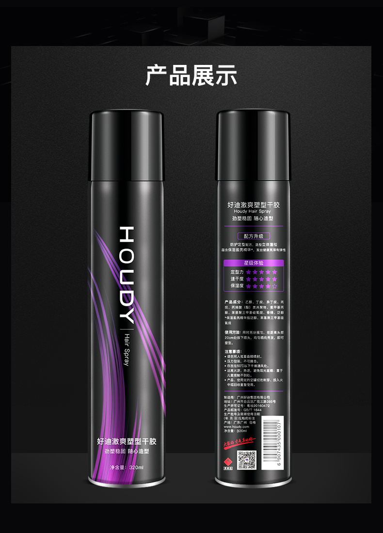 好迪定型喷雾女士卷发男士发胶激爽塑型干胶持久碎发蓬松清香320ml