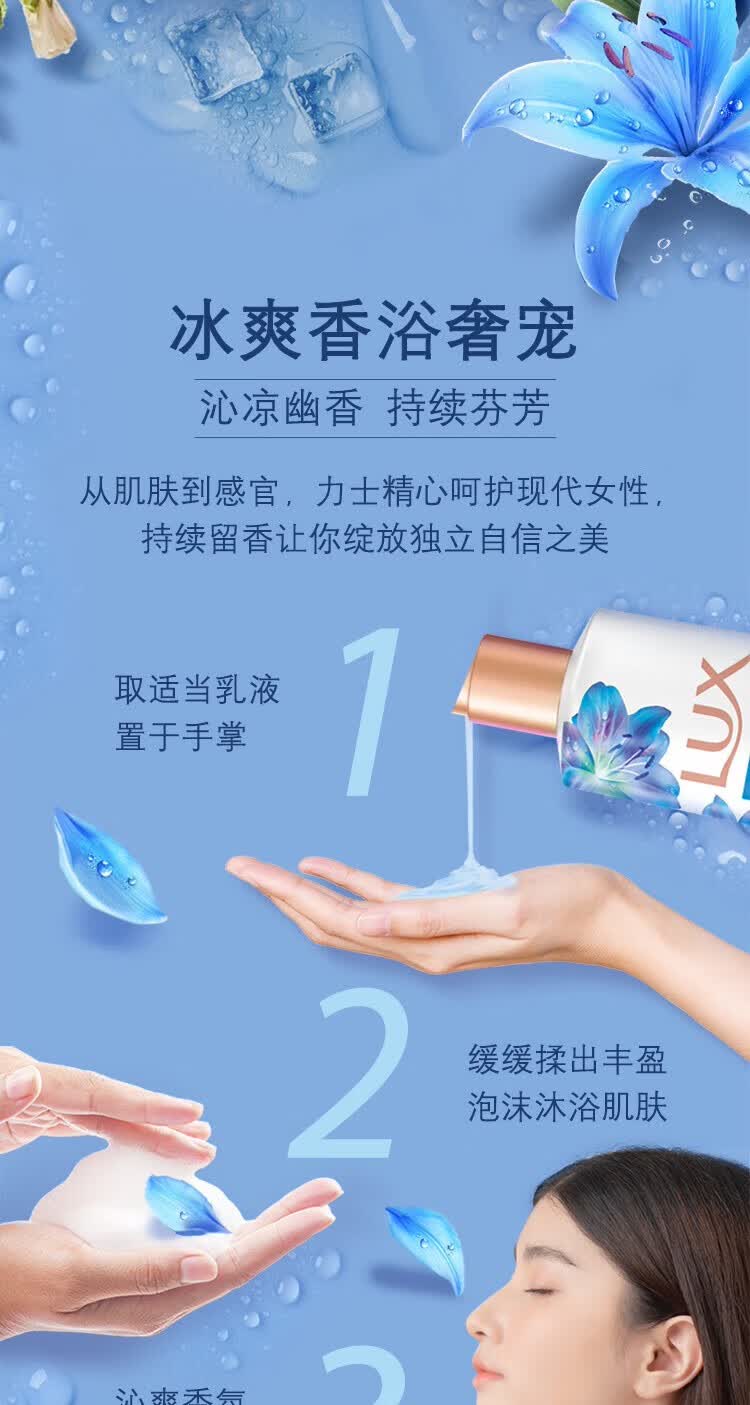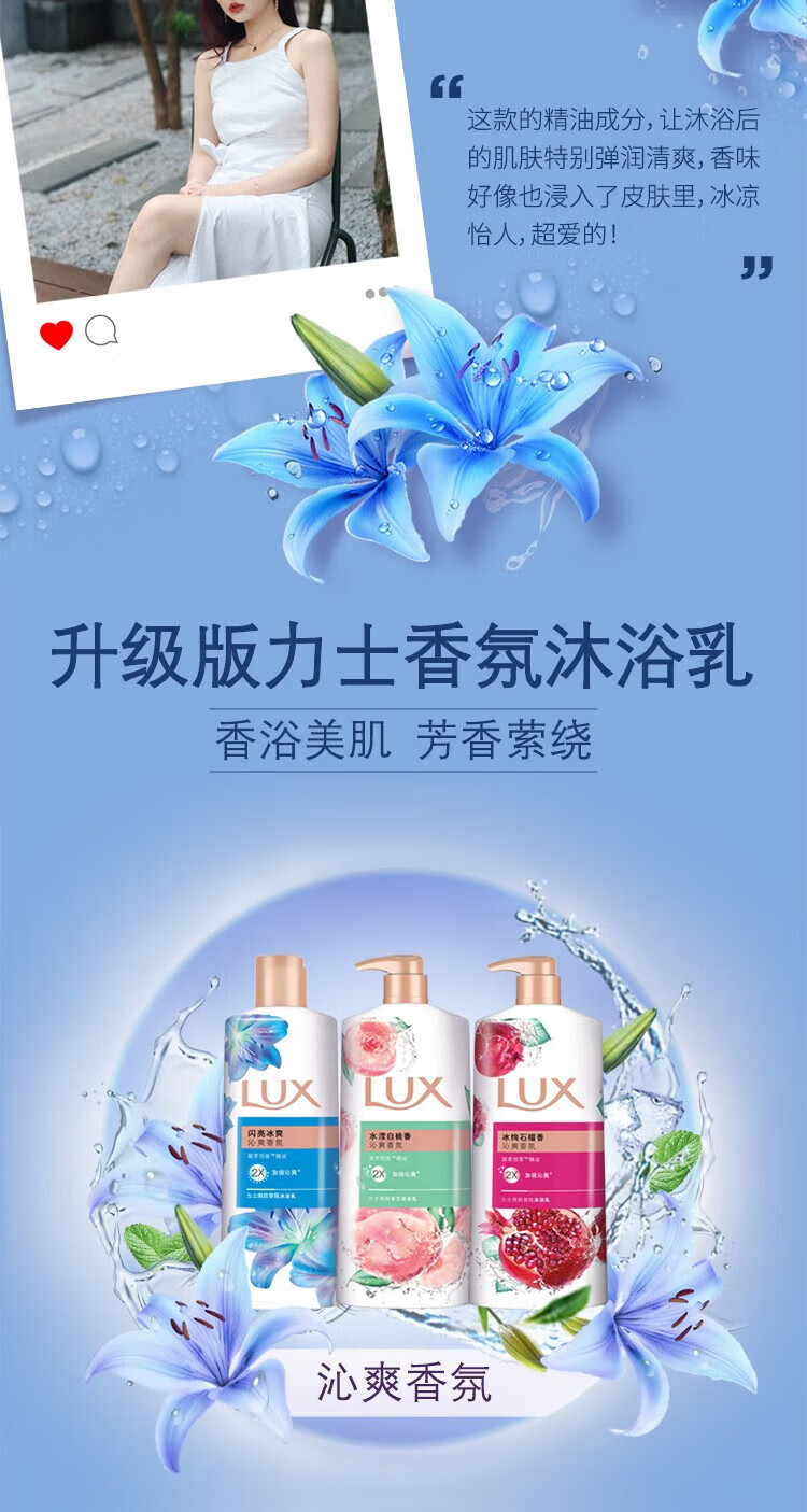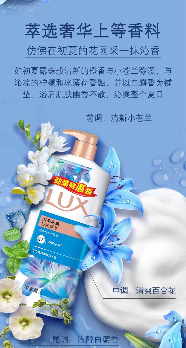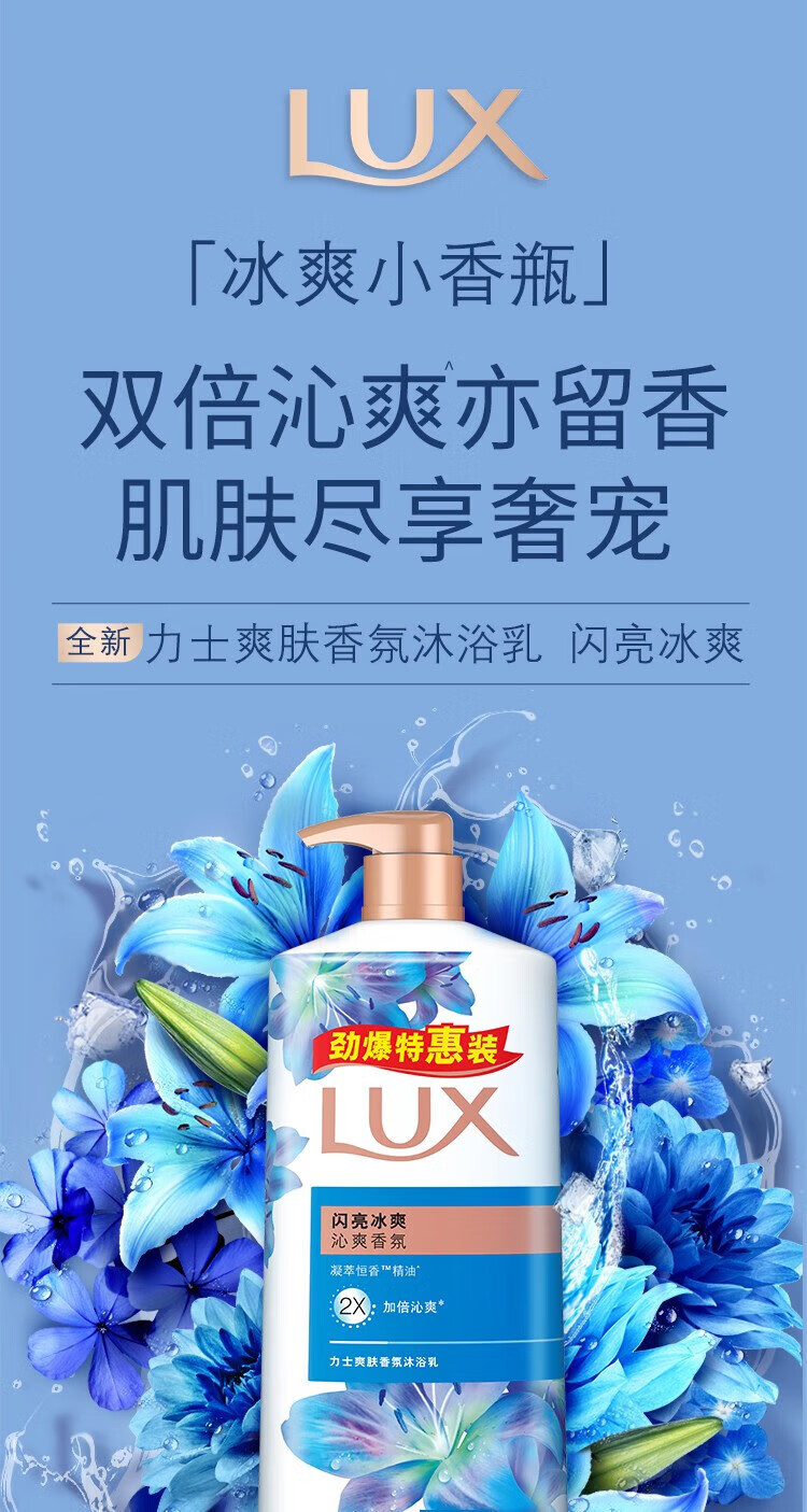 力士(LUX)沐浴露 900g/瓶 爽肤香氛沐浴乳闪亮冰爽