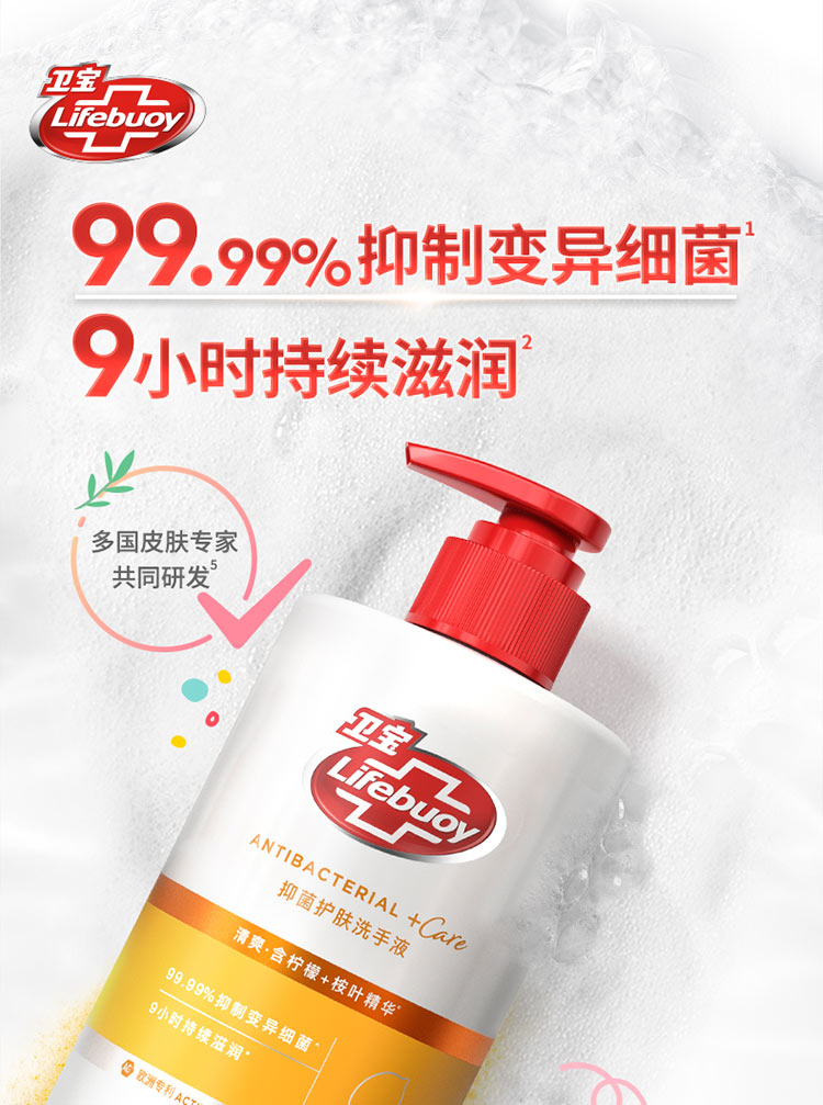 lifebuoy卫宝抑菌洗手液 清爽柠檬 滋润温和400g 1瓶 99.99%抑制变异细菌