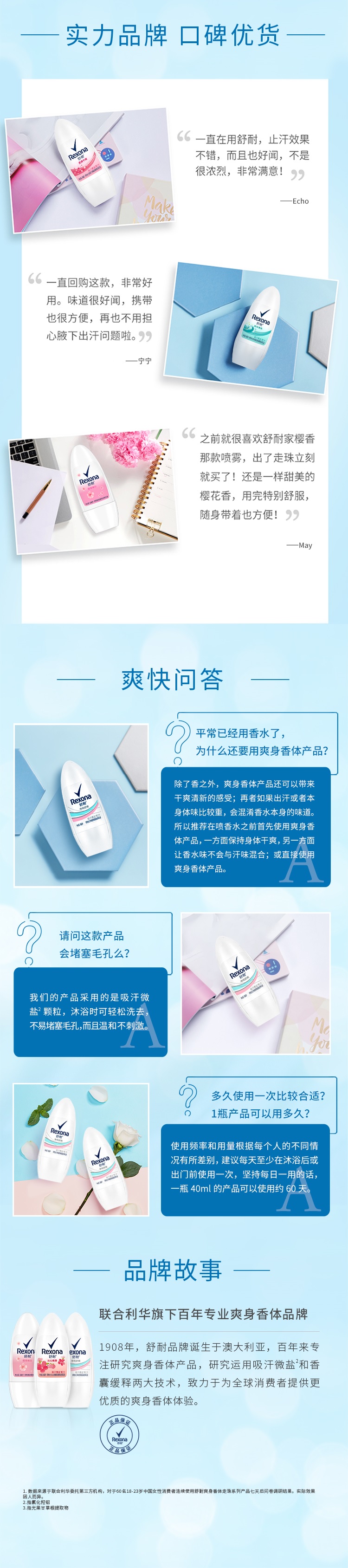 舒耐女士爽身香体止汗走珠液 轻扬茉香40ml 长效干爽净味(包装随机)