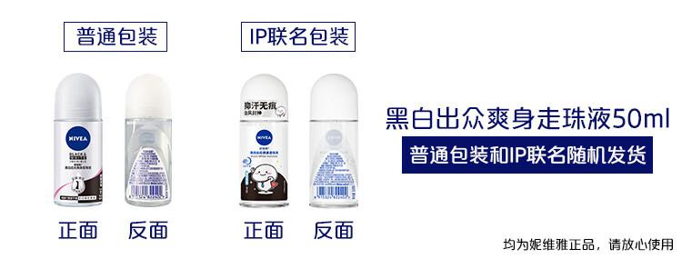 妮维雅(NIVEA)抑汗香体止汗露腋下干爽滚珠黑白出众爽身走珠液50ml*2