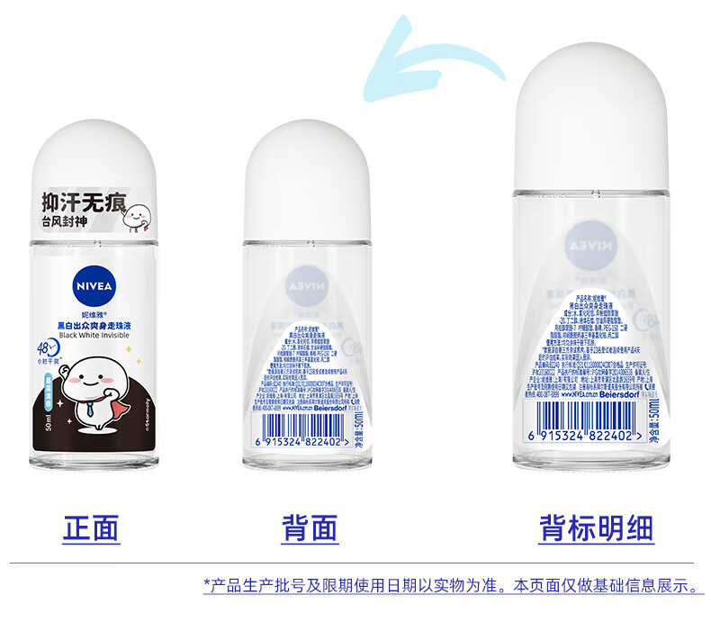 妮维雅(NIVEA)女士止汗露 黑白出众走珠液 长效爽身抑汗香体50ml