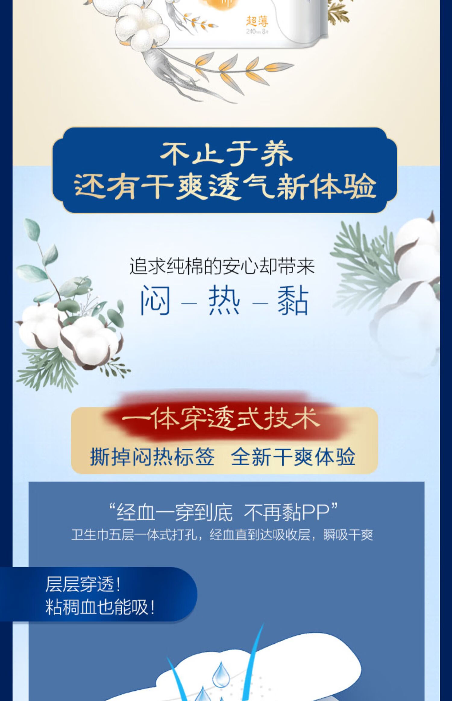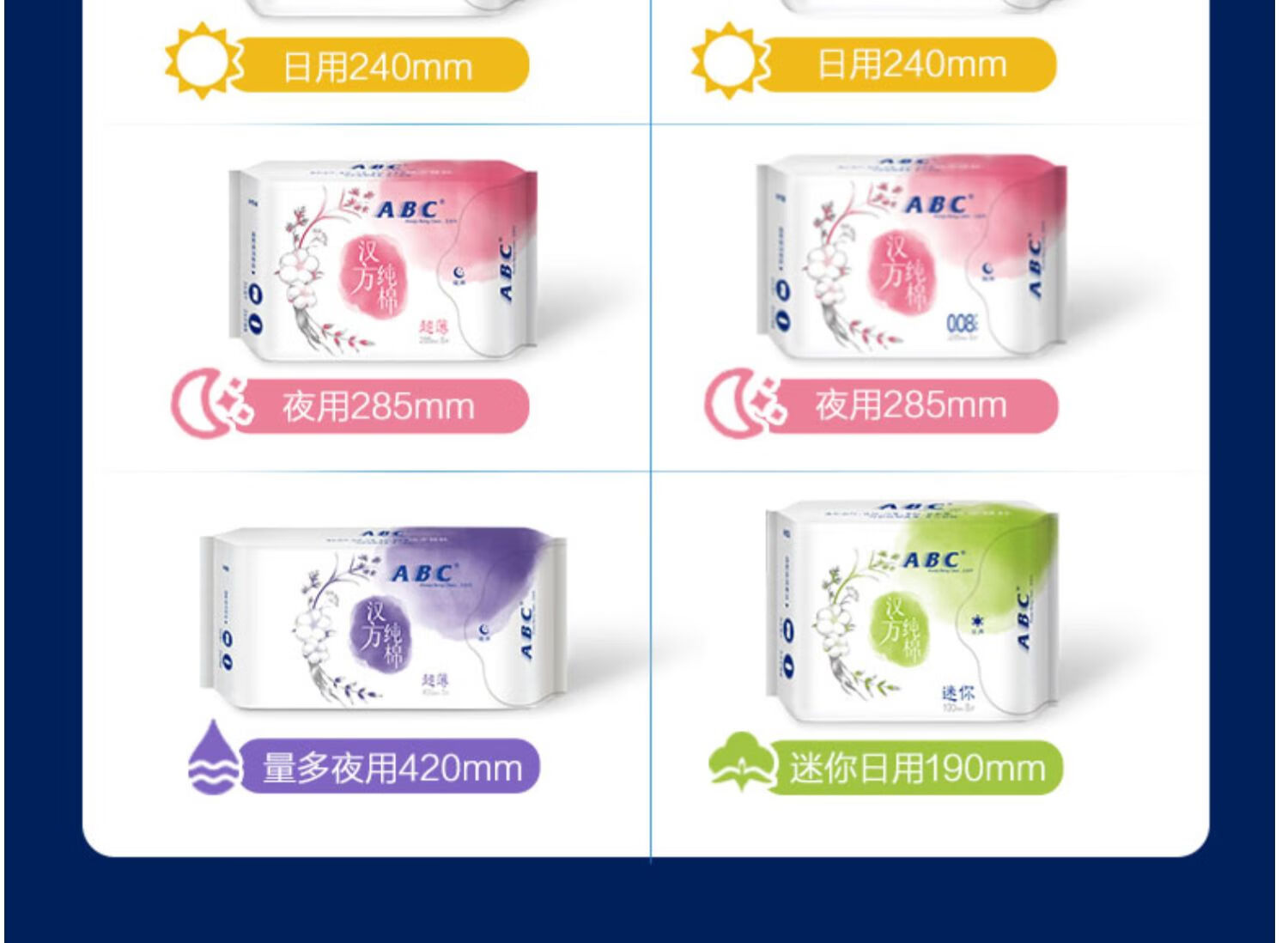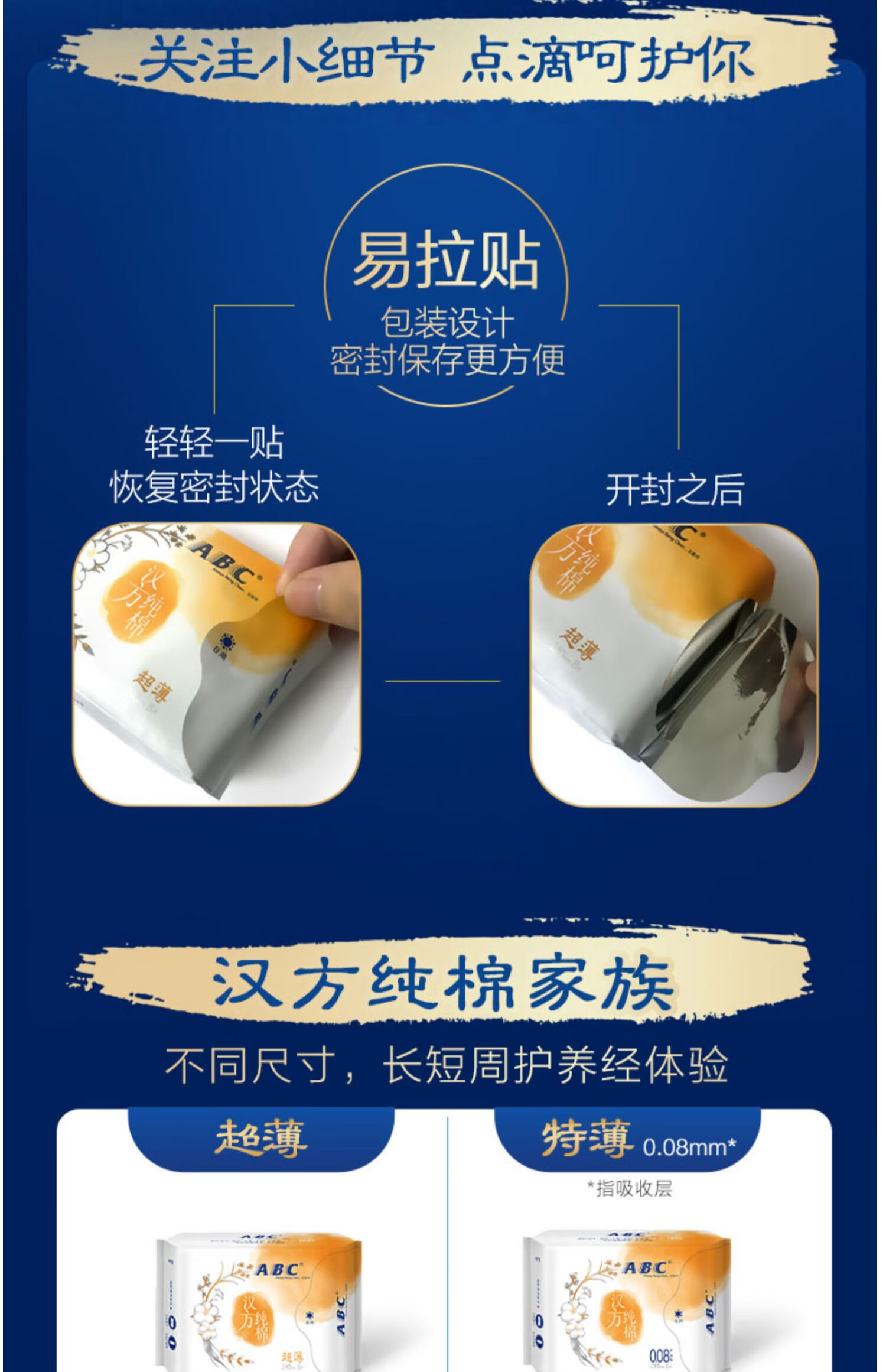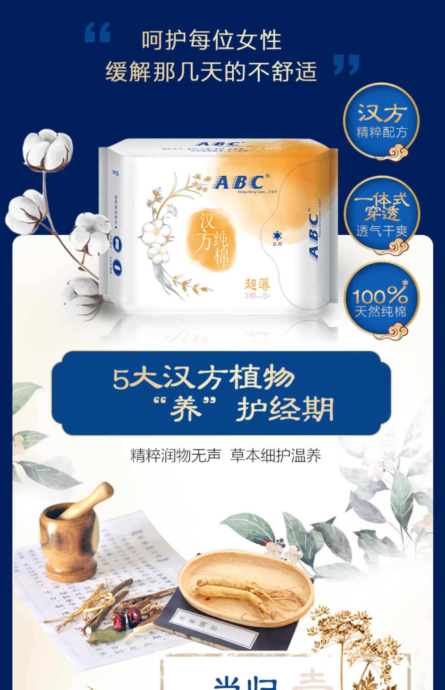ABC日用超薄汉方纯棉卫生巾240mm*8片