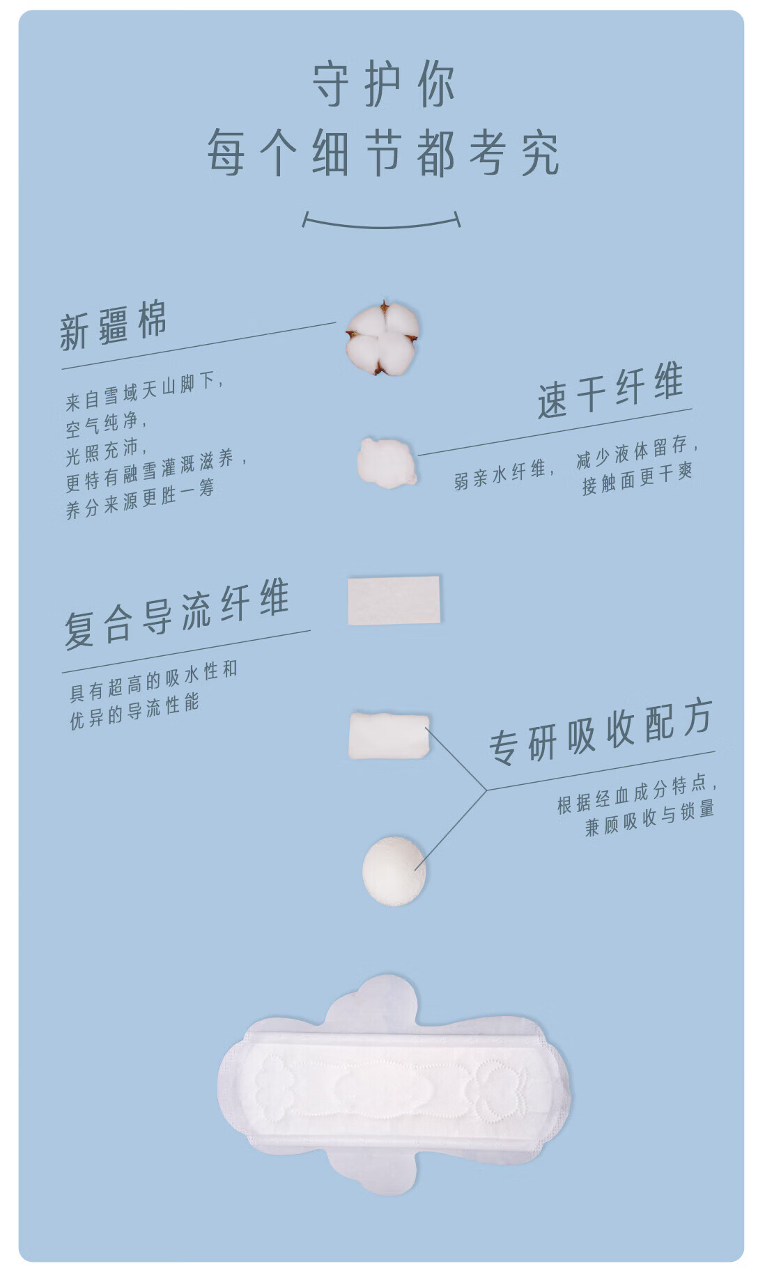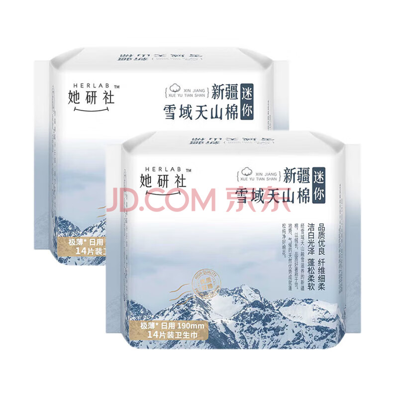 她研社卫生巾 190mm14片*2包新疆雪域天山棉迷你巾 超薄无感姨妈巾护垫