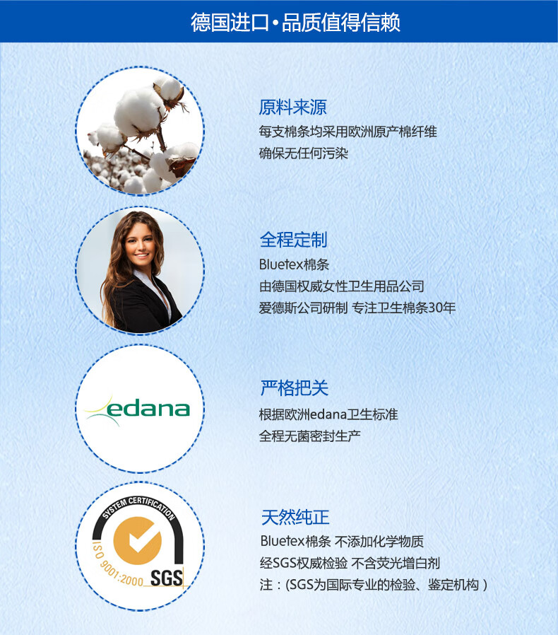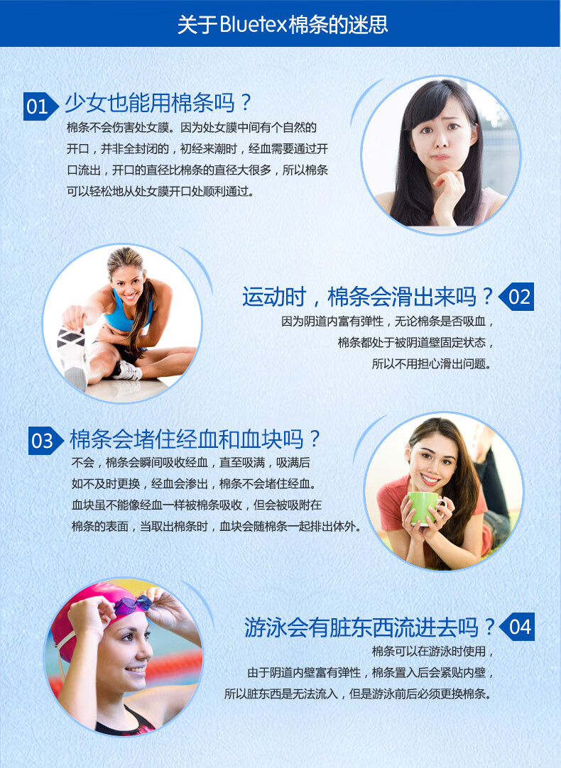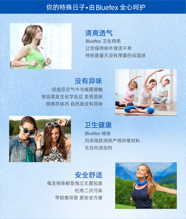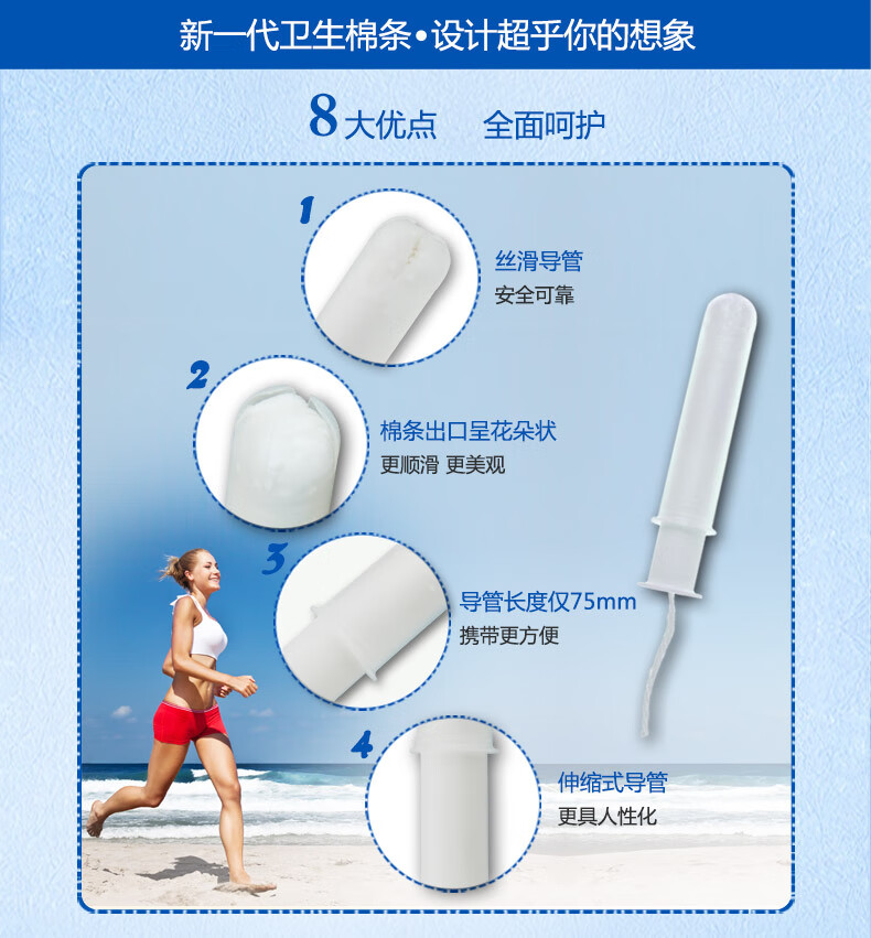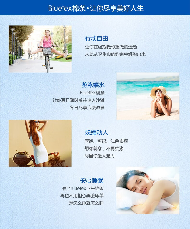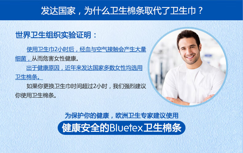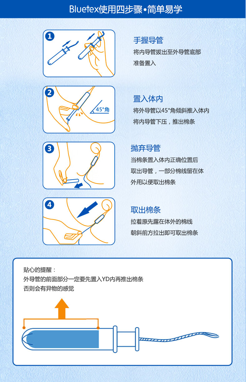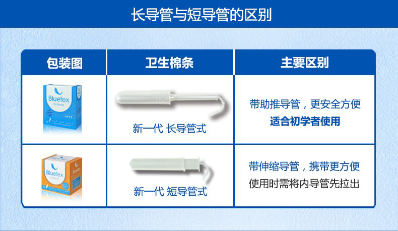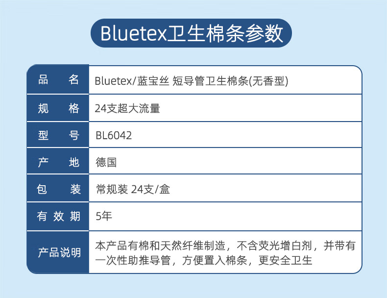 蓝宝丝(Bluetex)内置卫生棉条 导管式(短导管超大流量 24支)月经姨妈棒游泳进口