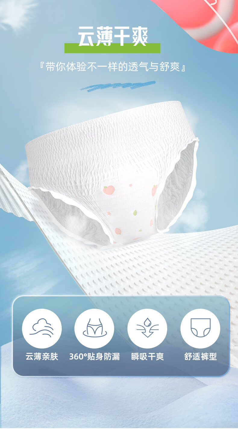 植护秘觉安睡裤蜜桃裤型卫生巾 轻薄透气防侧漏 夜安裤 XL码12片装