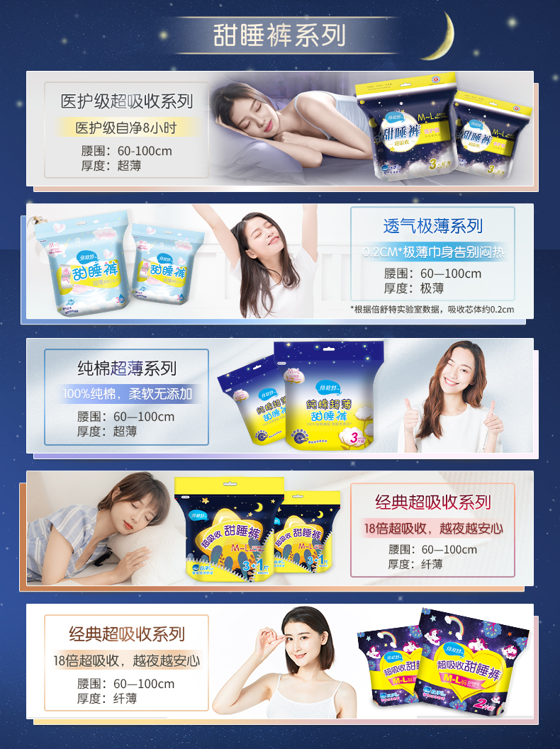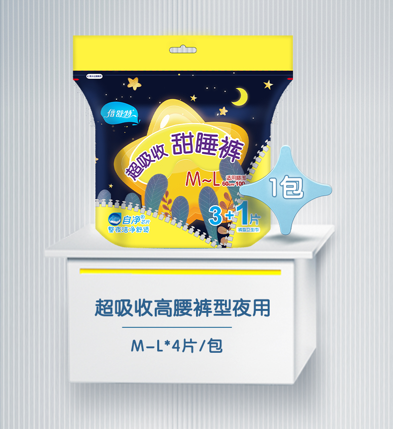 倍舒特超熟睡安心裤 甜睡裤裤型卫生巾M-L码4片装 超长夜用安睡裤夜安裤