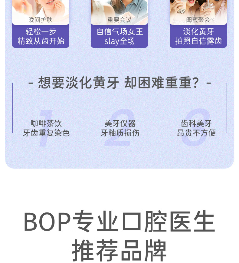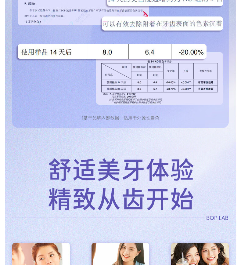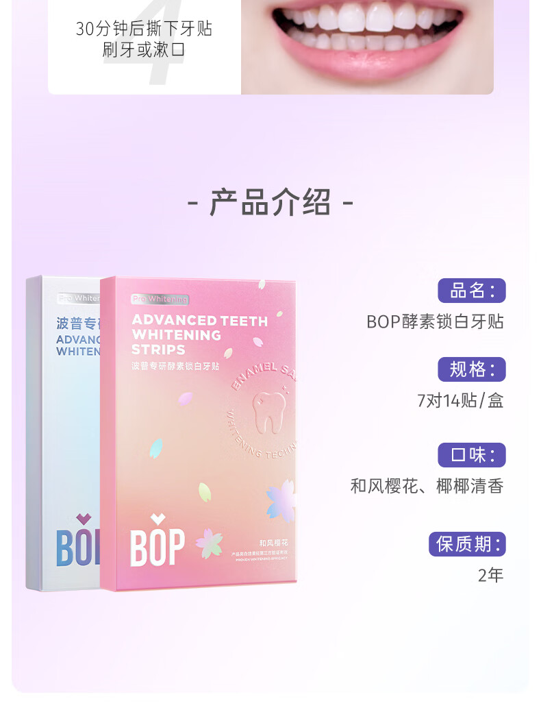 波普专研(bop)锁白牙贴牙齿变白炫白贴片美牙贴酵素锁白牙贴7对14贴