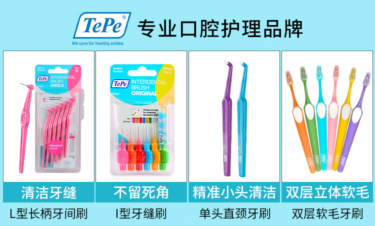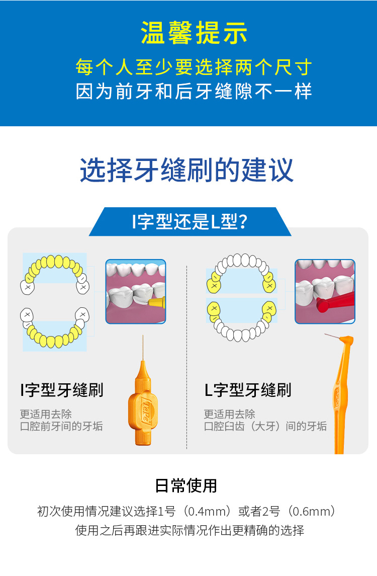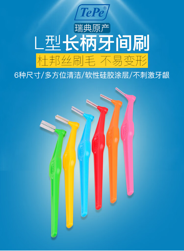Tepe瑞典进口牙缝刷正畸矫正牙间刷长柄-L型后牙齿间隙刷清洁齿缝牙刷