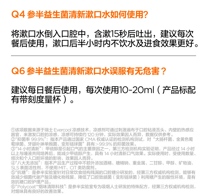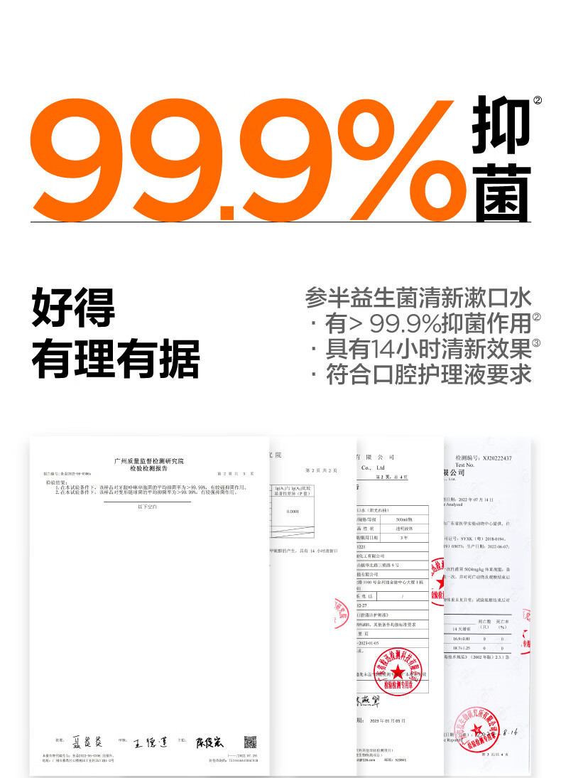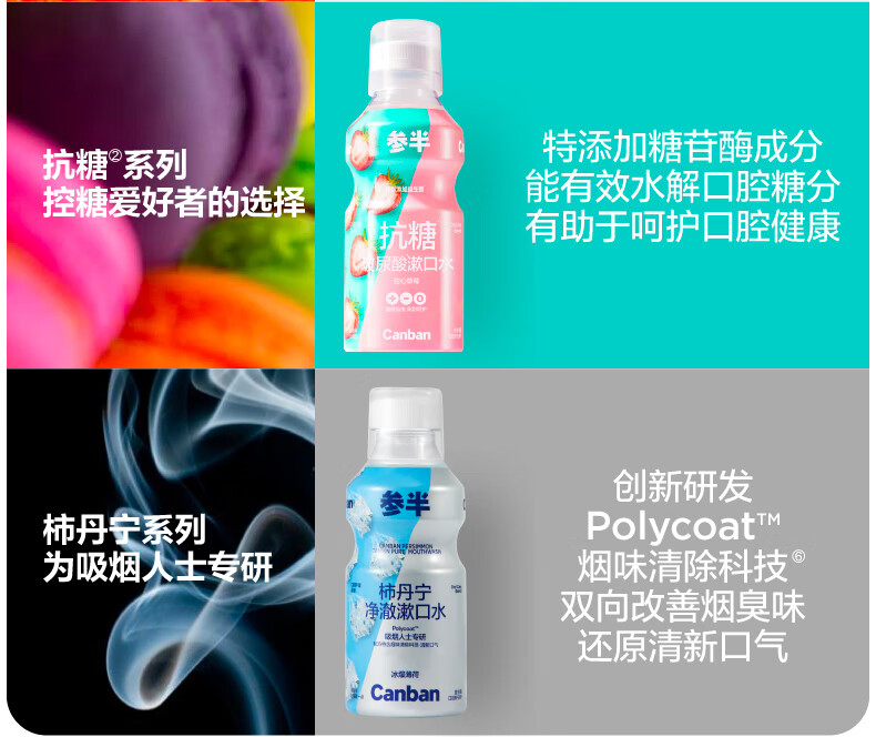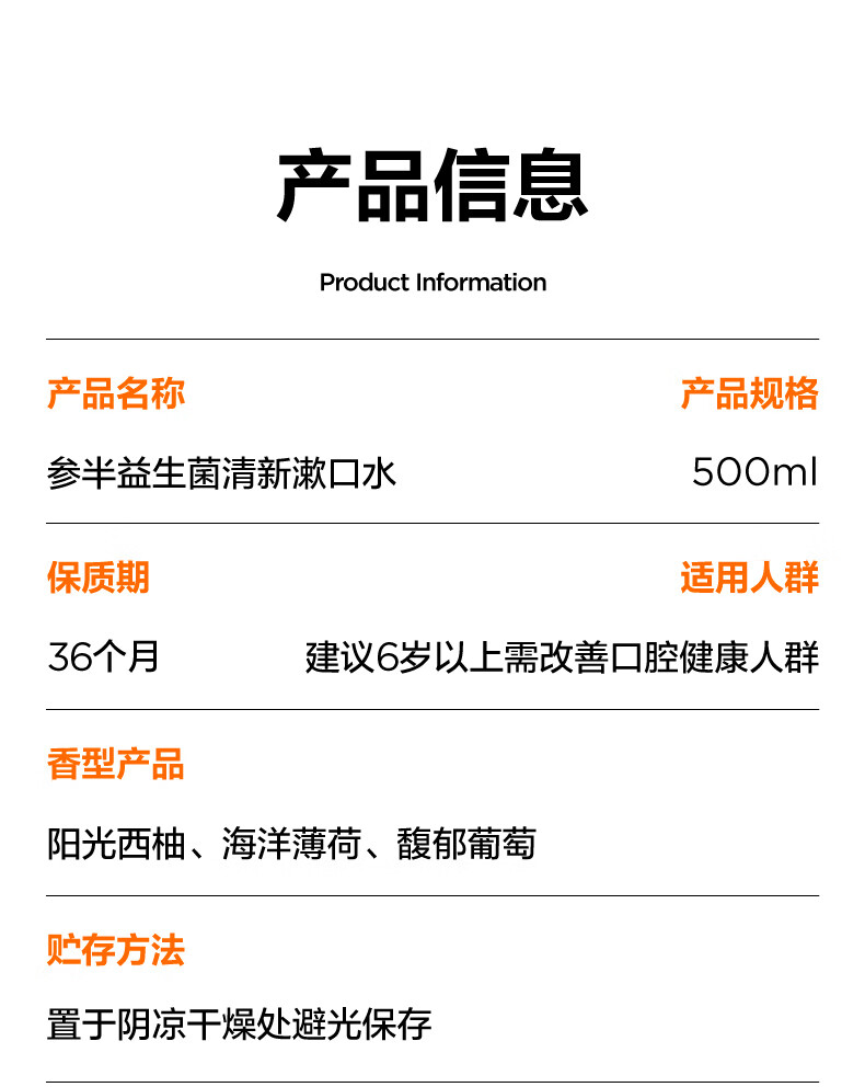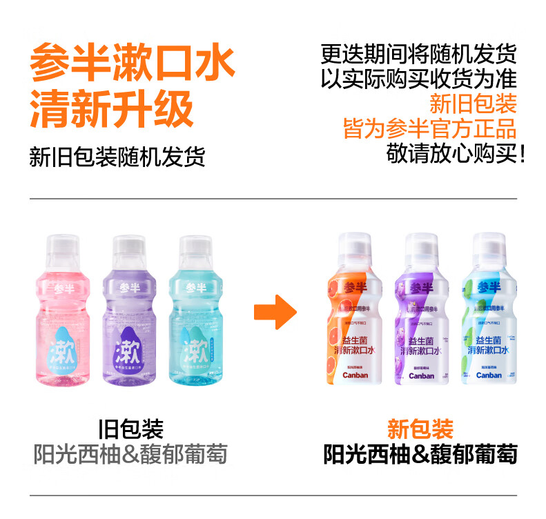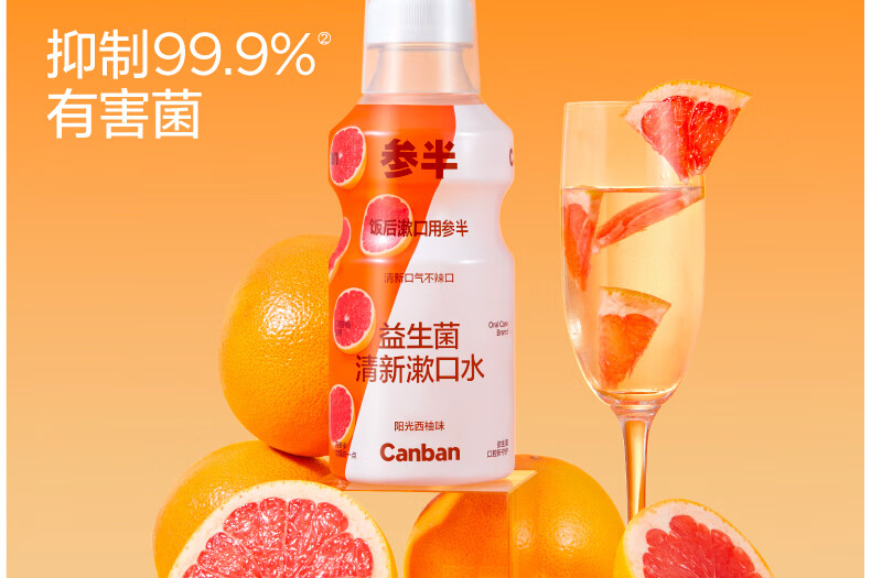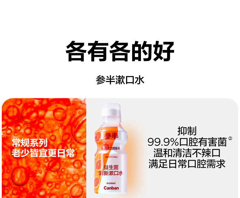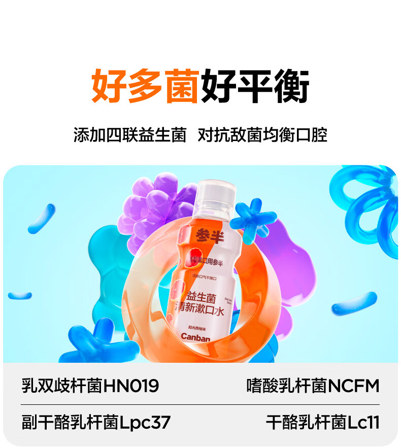 参半漱口水 馥郁葡萄500ML 益生菌清新口气深层洁净清洁 口腔护理