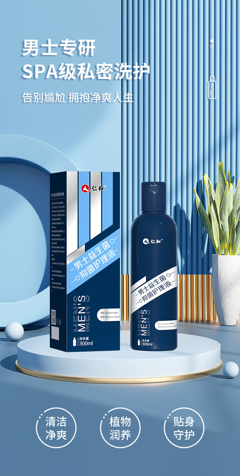 仁和 男士洗液 300ml 男性私处洗液益生菌抑菌私密护理液阴部抑菌清洁去包皮垢异味